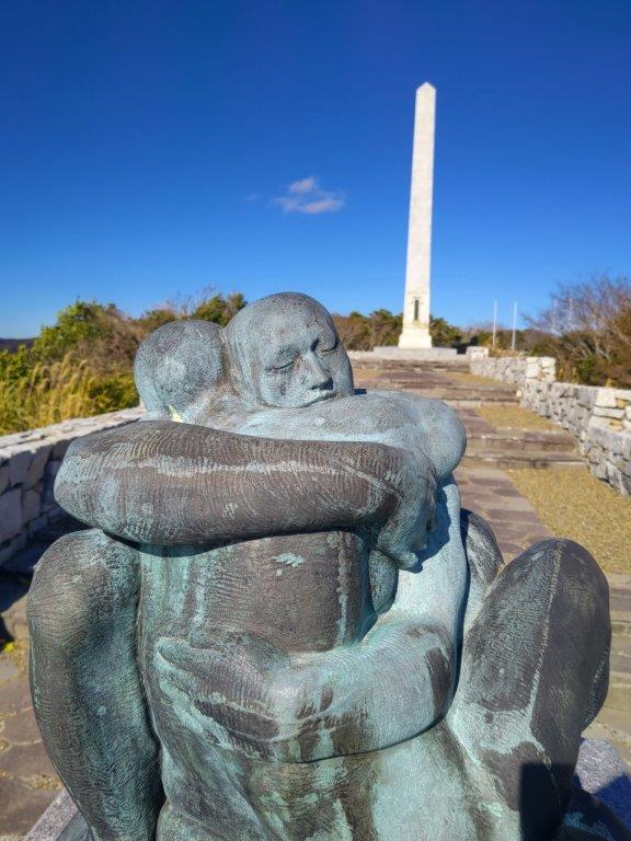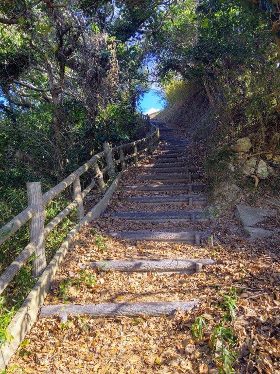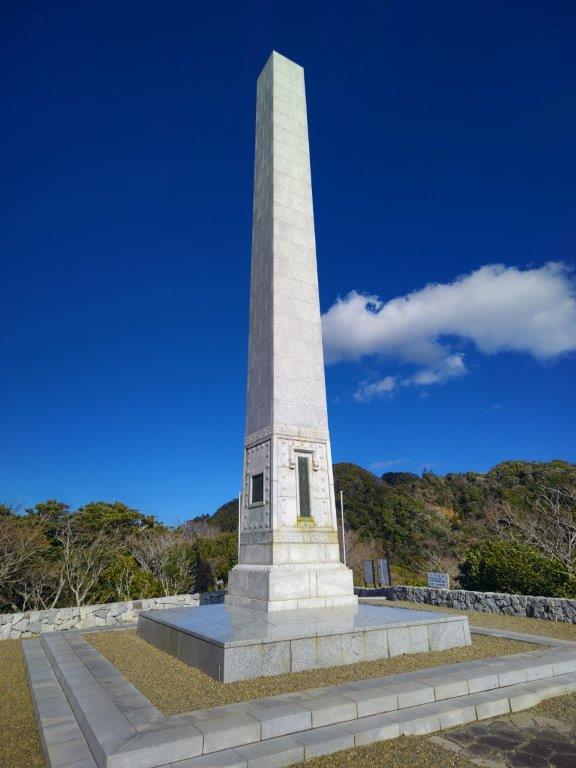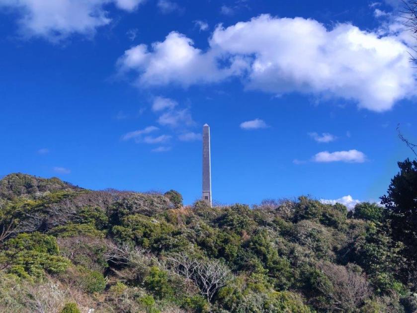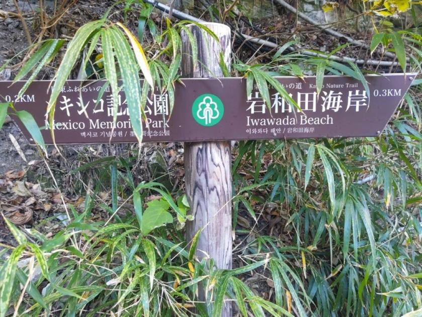 I was glad to get a bird’s eye view of Onjuku beach, completely deserted in this season; the green blue sea, white foamy waves, and pale yellow sand, framed by dark green bluffs rising in the background, created a scenic tableau. Looking down, I could see the Iwawada Fishing Port; above were birds of prey gliding through the sky. I headed back to the junction, and continued towards a soaring column on top of the next rise. After making my way up some more steps, I arrived at the Mexican Monument, commemorating the 1609 shipwreck of a Spanish vessel from the Philippines, and heartwarming rescue of the survivors by the local Japanese.