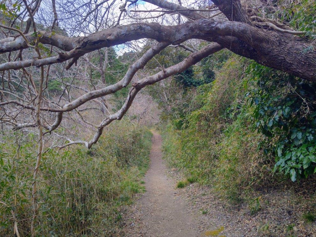 I was moved to read that Miura Anjin, whose life story I had just read, had built the ship allowing the remaining crew to continue their trip to Mexico. It was a little past noon so I decided to stop for an early lunch . Afterwards, I headed down a road back to sea level, and turned left upon reaching a main road, following the omnipresent Kanto no Fureai Michi signposts. Around here, I came across a “kyon“, a kind of miniature deer, foraging for food before vanishing into the bushes. A little further, I headed down an unsignposted footpath on the right side. After a 5-minute walk next to a bubbling brook, the surrounding view mostly blocked by tall grasses, I arrived at Ohazuki Coast (大波月海岸) one of the hidden beaches on today’s hike.