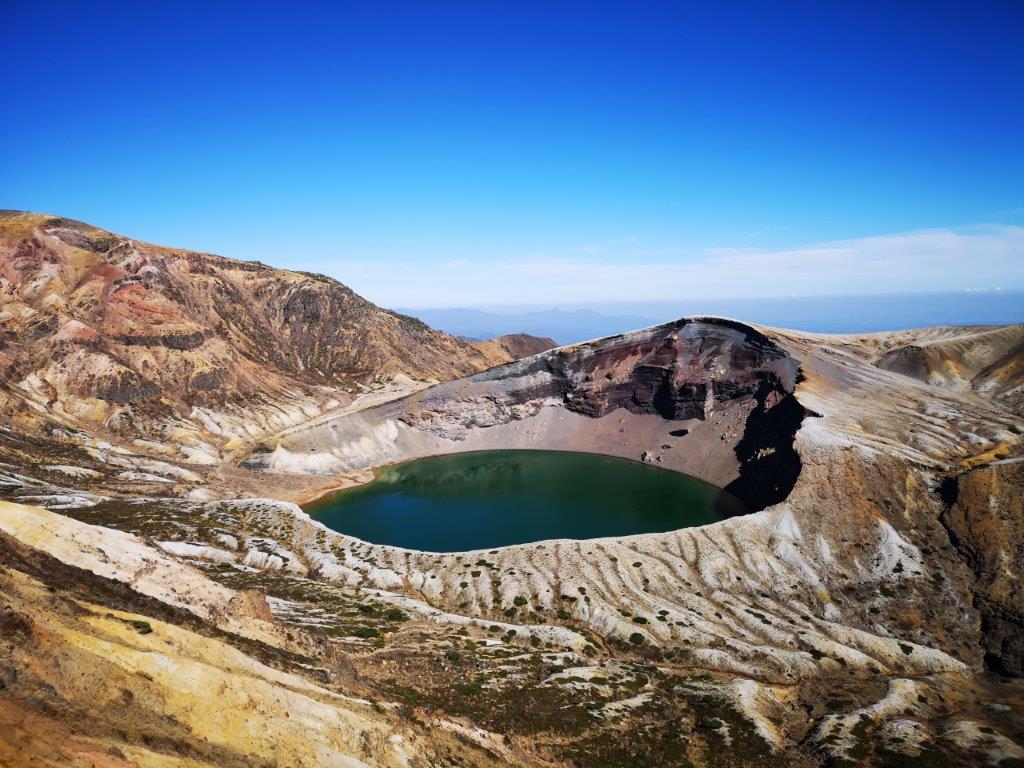 View of the Okama crater lake from Uma-no-se