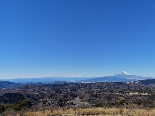 Soon I reached a viewpoint of Mt Fuji, as well a fork in the path. I chose the higher path along Mt Daimaru. At one point I crossed the Izu Skyline. This part of the hike was very pleasant. I found out later that this the path is inside a small trip that belongs to the Fuji-Hakone-Izu National Park. After an hour or so, I reached the very wide and flat summit where there was a concrete observation tower. The view was one of the best I had ever seen in Japan. On one side was Hakone, Mt Fuji, the South Alps, the Numazu Alps and Sagami Bay. On the other side was the Pacific ocean, the Miura peninsula and the Boso peninsula. To the South was the massive bulk of Mt Amagi. I was glad I had extra time to spend there.