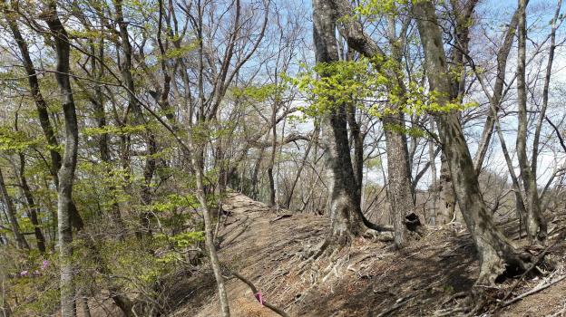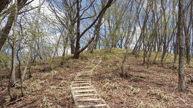 As with Mt Suwa the day before, the mountainsides were dotted with yamazakura, and all around I could enjoy the new green leaves of spring. I reached the top of the first summit of my hike before 12h30, less than two hours after setting out. I had great views of Mt Asama to the south, and Mt Azuma and Mt Shirane-Kusatsu to the West, all still covered in snow. To the West I could also spot the outline of Mt Haruna.
