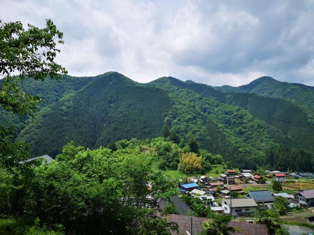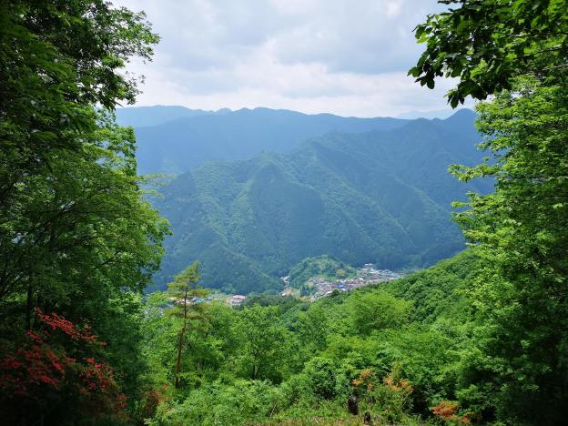 It was cloudy and sunny but temperature-wise, perfect for hiking. The climb up was surprisingly beautiful: the path was easy to hike, and the surrounding forest felt wild and untouched – exactly what I crave for in a hike. Apart from a mountain biker, I saw no-else on the climb up. Halfway up, there was a nice viewpoint of Nishihara village, and the ridge I had hiked down from Matsuhime toge, 3 years ago.