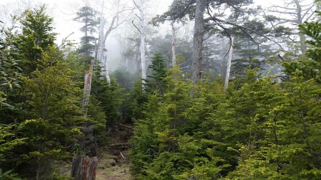 Although the climb was tough, steep and shrouded in thick mist, the surrounding forest was wild and beautiful – is it possible that I had left Tokyo only this morning? I put on my bear bell, which I rarely do, since I saw no other people and the vegetation was still thick above 2000m.