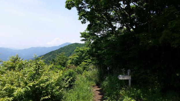 As I dropped below one thousand meters, I started feeling the heat and humidity more. At Gando Pass 厳道峠 I turned right. I could have continued straight, but I wanted to explore the connecting to path to Mt Afuri – I had seen the other end I few years ago after climbing that mountain. The first part was disappointing – a fairly steep and difficult to navigate descent, followed by a shorter but equally steep ascent.