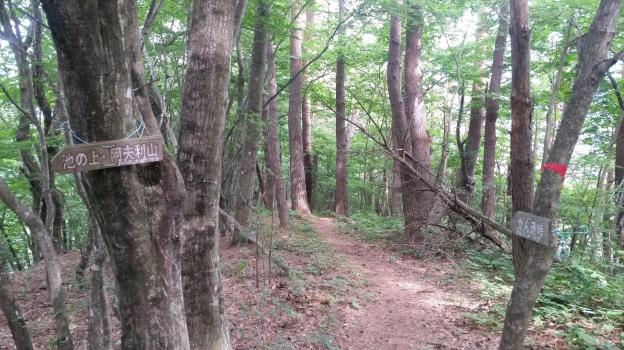 Thirty more minutes of easy hiking brought me to the top of Mt Nabatake 菜畑山. A steep descending slope, followed by an equally steep one going up, brought me to the drawn-out summit of Mt Akakura 赤鞍ヶ岳. From there it was a gentle downward sloping ridge. The vegetation had changed from wild to tame – you could sense the proximity of human habitation.