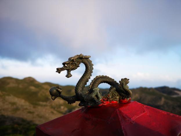 Dragon on top of Mt Tenjo’s summit marker