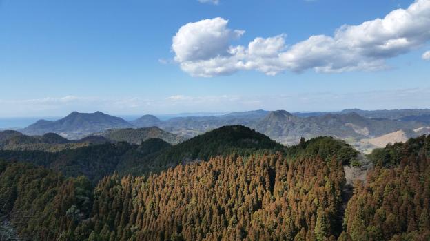 A hike on a hidden mountain in the middle of the Boso peninsula – I had trouble finding it again on the map while writing this post. This time, I took a bus from Kisarazu station, then hiked along a small road, through a hamlet with many cats, and finally reached the start of the trail: log steps heading up the side of the hill. At the top, I admired the views of Mt Kano to the North, before continuing southwards. The views of central Chiba aren’t really all that amazing, but I find the sight of green rolling hills in all directions very impressive. It was a fairly easy hike with occasional views; the rocky top of Mt Takago (高宕山 たかごやま takagoyama), a Kanto 100 famous mountain, is the highest point in the area, with a sea of trees spreading in nearly every direction. At one point, hungry for more views, I extended the hike by doing a short there and back along a lonely ridge. After returning to the main trail, I made my way down, running and walking since it was getting late, and ended up at a bus stop in the middle of the countryside not far from Lake Mishima, after a very satisfying seven-hour hike.