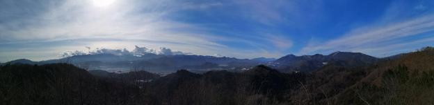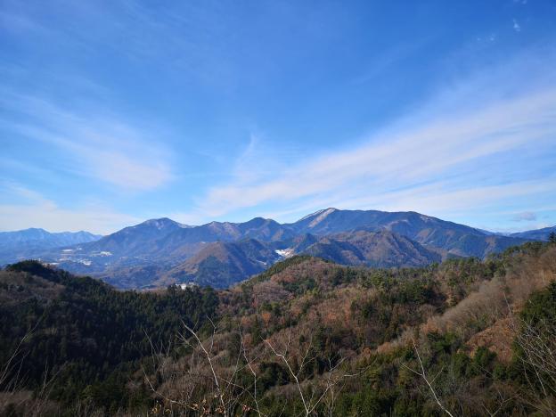After a quick bite, I set off again. It took me only ten minutes to reach the top of Mt Yaeyama 八重山. There was a small arbour, but the view was somewhat obstructed by trees. I started walking down, and less than ten minutes later I came to another arbour and lookout point. Here, the view was top notch; arguably one of the best in the Tokyo area. From left to right, I could see the Tanzawa mountains, Mt Fuji, Mitsutoge, Mt Ogiyama and Mt Gongen.
