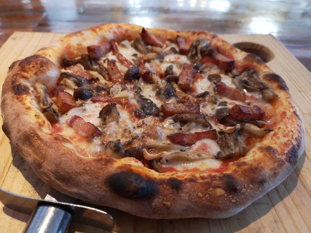 Mushroom & bacon Pizza at Aki’s Pub and Cafe