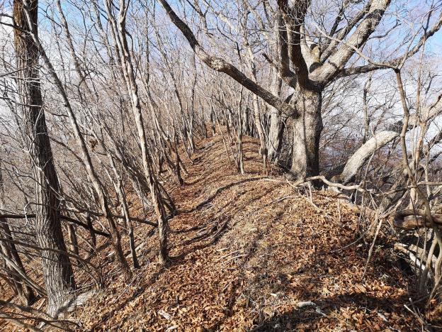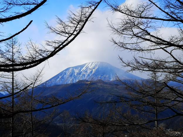 I arrived in Nikko at 10am, but since it was a short hike, I took my time getting ready, and only set off a little before 11am. It was a nice day and the view of Kirifuri Highland covered in the snow from Nikko city was quite spectacular. The start of the hike climbed relentlessly through thick forest. Less than an hour later, I reached the minor peak of Mt Konosu 神ノ主山 (842), and there was a glimpse of the surrounding mountains through a break in the trees.