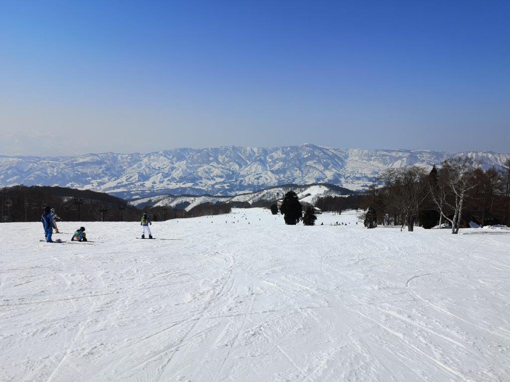 I almost wanted to spend the rest of the afternoon lounging in the sun, but I was worried about getting sunburnt; I also wanted to get some more skiing in before the end of the day. It was 3pm and I had less than two hours before the bus back. I did one more “Challenge” run, at a slower pace on a full stomach, and then headed back to the Yamabiko area to finish with the skyline. Once again, I wasn’t the only person with this idea. Fortunately, I had been conservative with my timing, and I could afford to hang around waiting for the slope to clear while enjoying the views. Despite the warm temperatures, the snow never got slushy and wet (except at the base of the gondola), and I just had to remove one layer of clothing to ski in comfort.