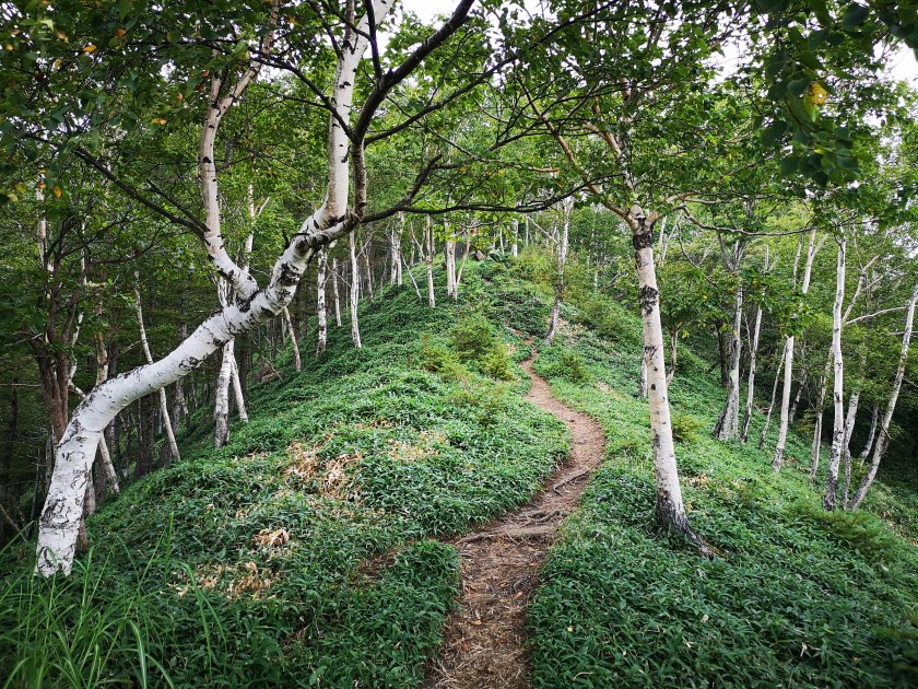 Climbing through the birch trees, called “kaba” in Japanese