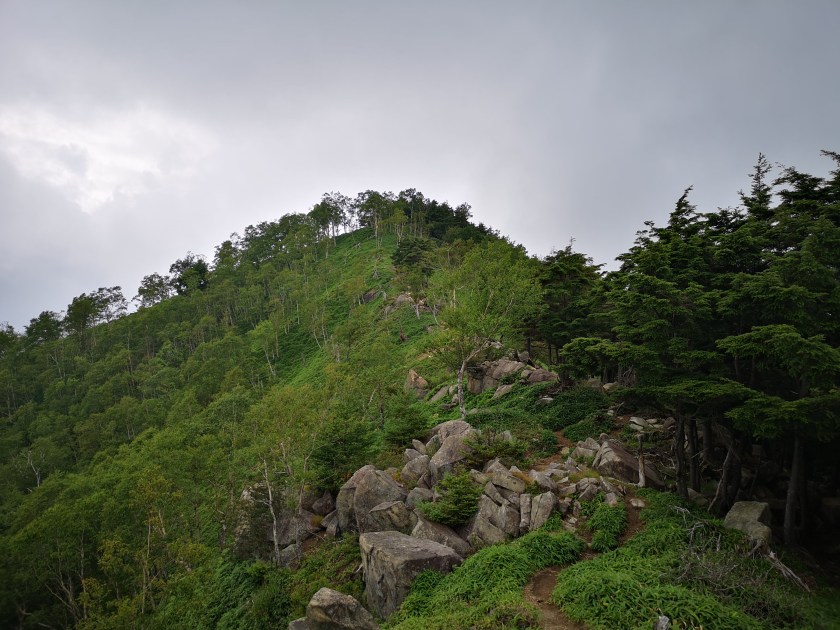 The trees thinned, and I soon emerged onto a grassy rocky slope. Here, I had some of the best views of the day, I stopped every few meters to take photos. On my left, the lower ridges dropped away, giving the impression of being at the top of the world; on my right, the highest mountains of the Nikko National Park loomed above me, their peaks lost in the clouds, giving the impression of being at the edge of a hidden kingdom. I felt grateful that I could do such an amazing hike as a day trip from Tokyo.