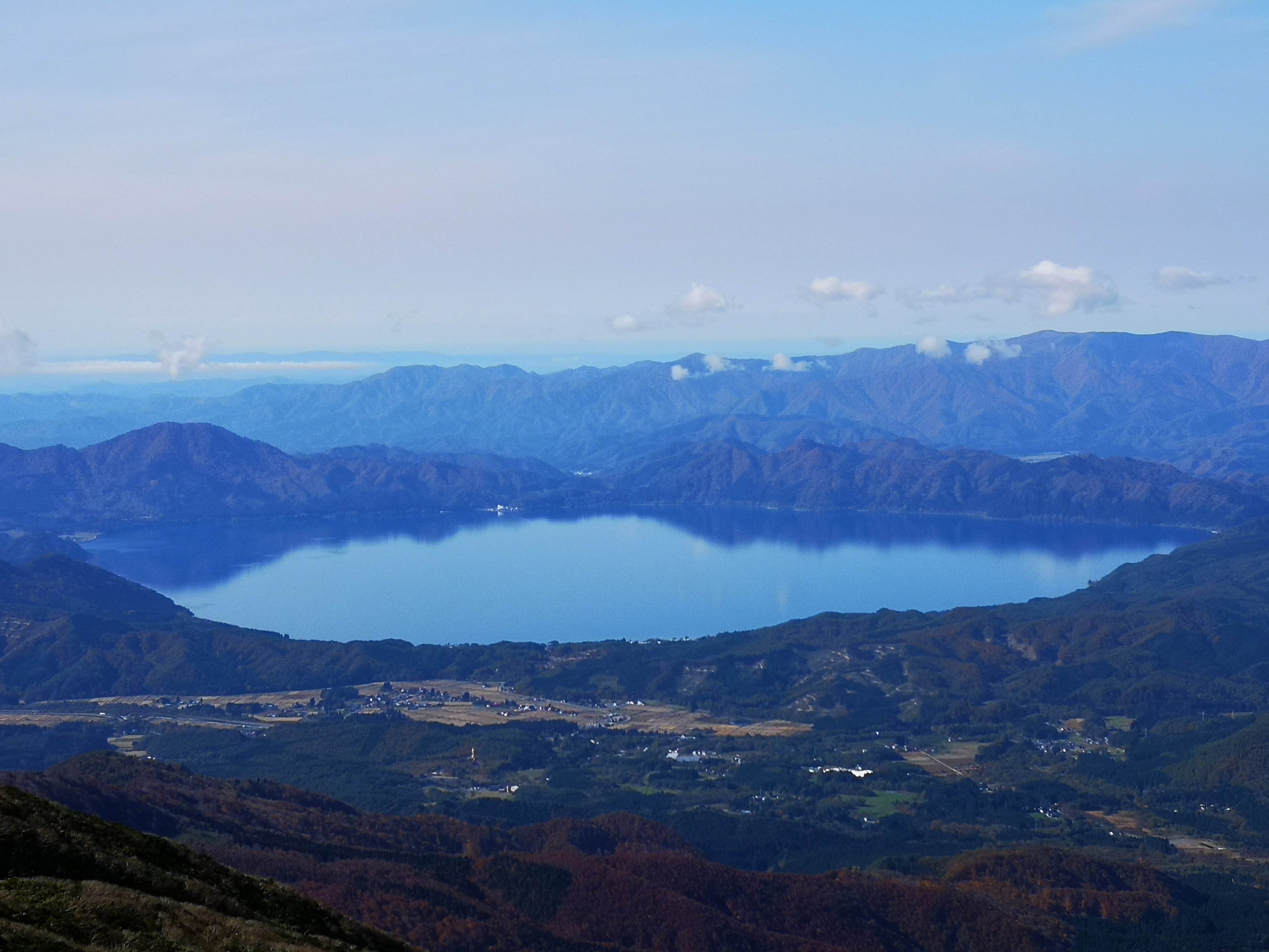 I set off at 9h30 up a gently sloping path circling the base of the first peak. The mountains of Akita, coloured red brown at the end of the autumn season, spread out to the west. As I progressed, the view gradually extended southwards. Soon, I was able to see Tazawa lake, and even Mt Chokai in the far distance. It felt great to be hiking on such a beautiful day inside the Towada-Hachimantai National Park.