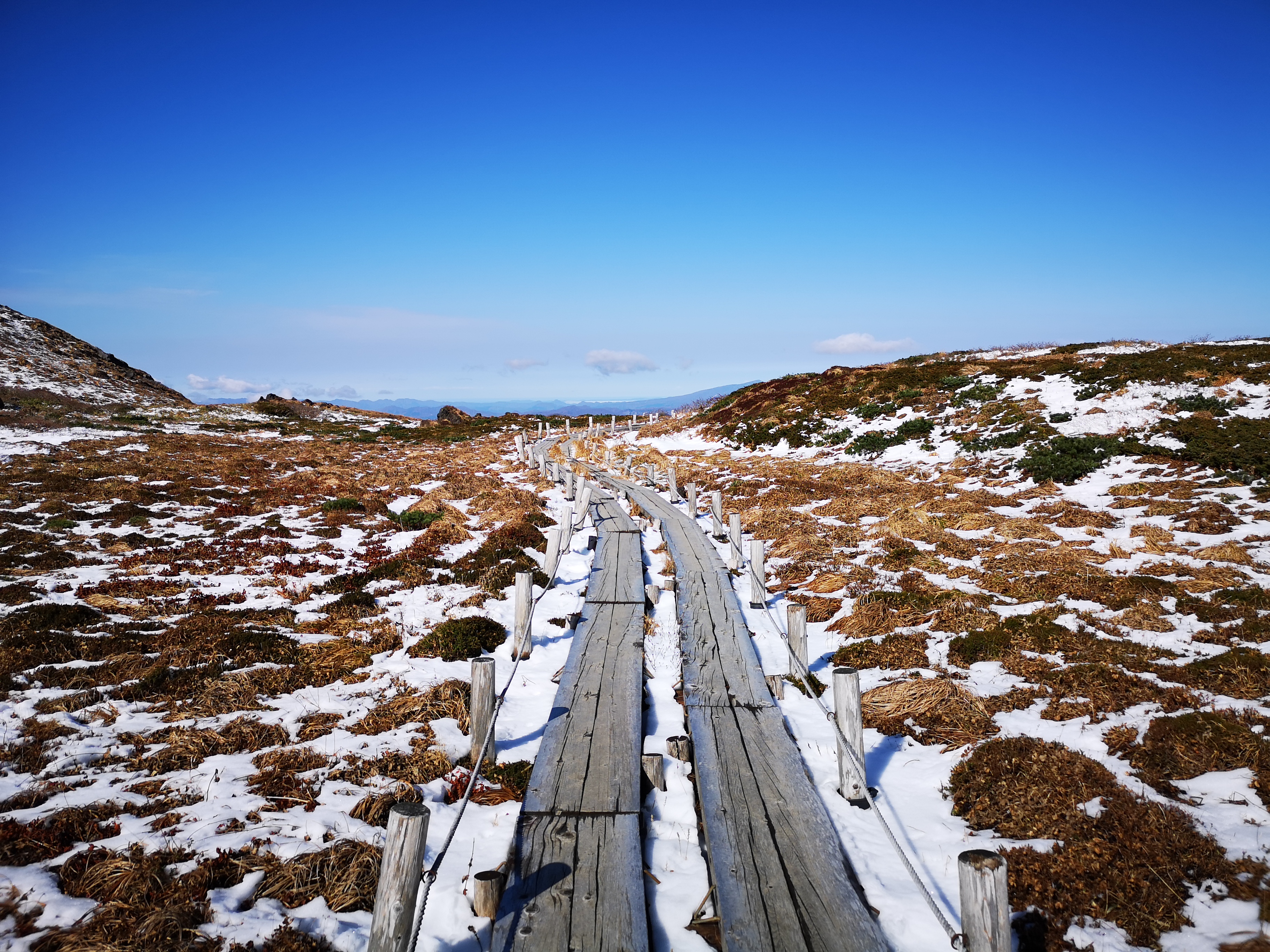 The wooden walkway near the top of Mt Akita-Koma