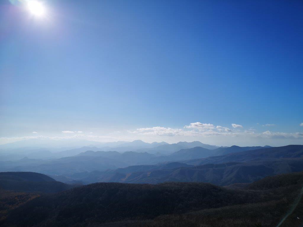 Navigating the Sendai subway turned out to be fairly easy. A kind Sendaian(?) pointed me to the correct platform for the bus. I was first in line but the bus turned out to be surprisingly empty. I arrived at the the huge parking lot at the base of the mountain around 11h30. There were quite a few other hikers on the trail, enjoying the fine weather, and trying to catch the last of the autumn colours. Fortunately, the Suijin trail was wide and rocky. I walked quickly as the path climbed gradually through a forest of leafless trees. There were no views; however, the contrast of pale tree trunks against the blue sky was stunning.