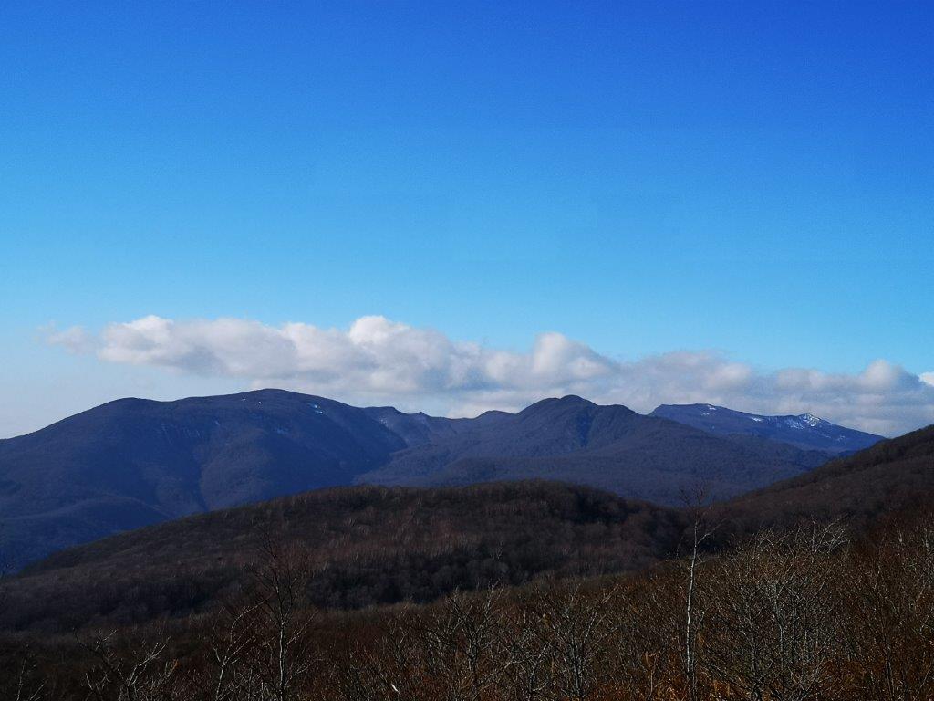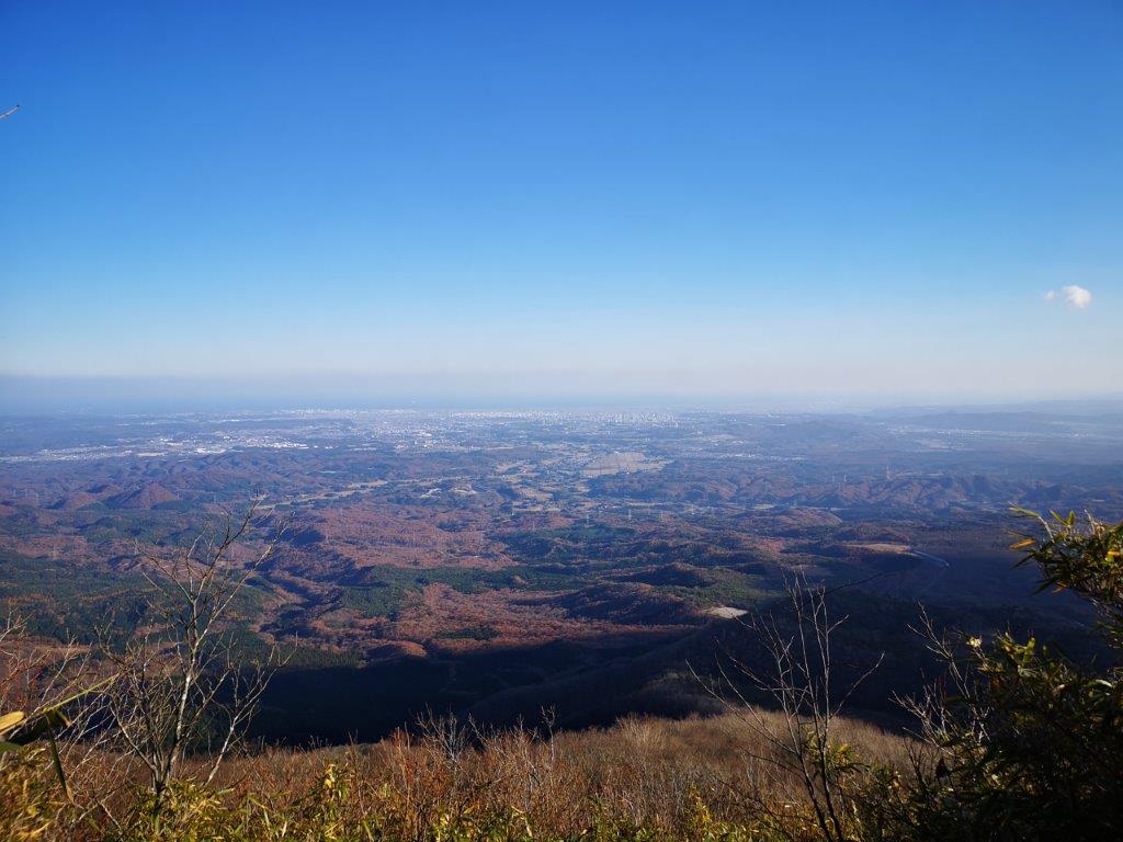 At 1pm, I reached an open space and the first views, as well as strong gusts of wind! After putting on an extra layer, I was able to enjoy the view; to the east was the flat coastal plain with Sendai city in the center; to the West I could see Mt Funagata with patches of snow on the top; stretching southwards was the mountainous area on the border of Miyagi and Yamagata prefectures. Visibility was excellent today. I was able to make out the Ide and Asahi mountain ranges, as well as Mt Zao. It took me just a few more minutes to reach the highest point of Mt Izumi (泉ヶ岳 いずみがだけ izumigadake), a 300-famous mountain of Japan.