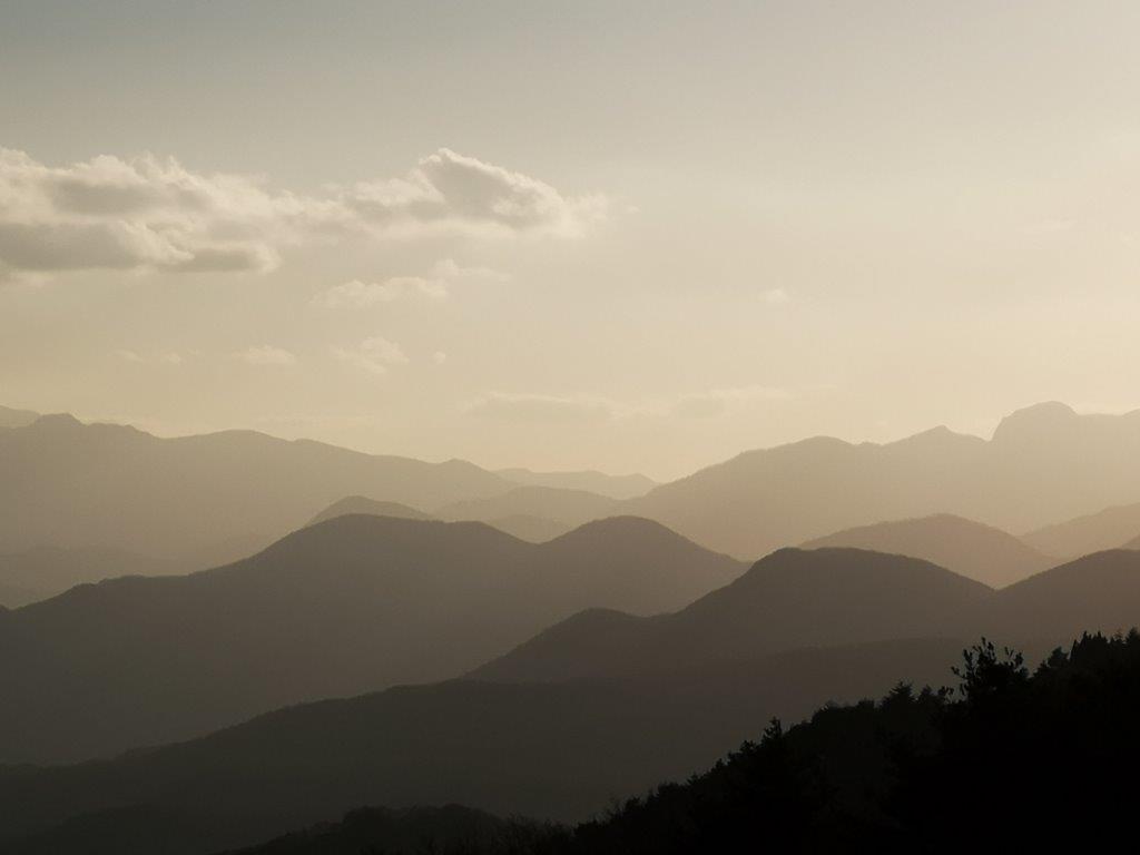 The flat wide summit was completely in the trees. There was no wind but also no views. I walked five minutes westwards towards the next peak, Mt Kita-Izumi, and found a spot with a view and without too much wind, perfect for lunch. At 2pm, I was ready to descend. I seemed to be the last person left on the mountain. The wind had completely disappeared, and the conditions were perfect for hiking. At first, I had great views east towards Sendai city. Then the path curved westwards around the mountain-side and entered the forest. Half an hour later, I reached an open space. Turning around, I had a good view of the rounded summit I had just come down from. I continued along the now level path, and soon reached a junction. Here, I turned left and headed towards the Kamoshika trail.
