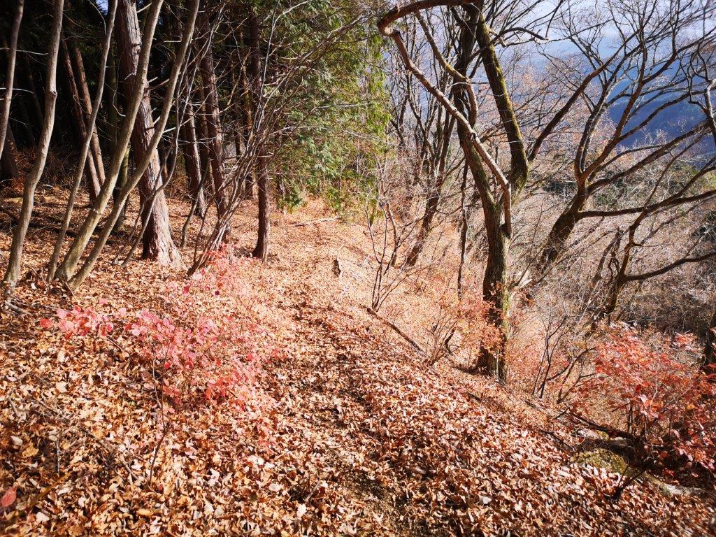 I had visited this Kanto 100-famous mountain twice before, in the winter and in the spring. Although it was early December and the leaves had already fallen in the mountains, it was sunny and pleasant in the daytime – so in my mind this would count as an autumn trip. My plan was to ascend the same route as in 2015, but without snow this time, and then descend via the South Ridge route (南尾根コース). The previous time I had used the Omotesando route (表参道コース), so I was looking forward to hiking a new trail. I could see on the map that it had a viewpoint along the way, and ended further down the mountain than the other trail, although it was still a 40 minute walk on a paved road to the bus stop. One concern was that the bus to the start of the trail left rather late in the morning. Since the days were shorter now, I would probably have to wait for the return bus in the dark; luckily, there was an excellent hot spring at Seibu-Chichibu station to warm myself up at the end of the day.