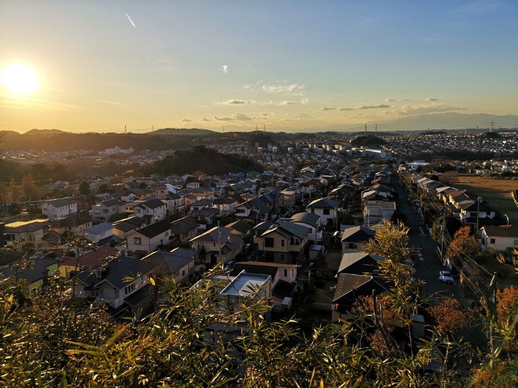 Against the sun, I was able to see the faint outline of Mt Fuji. I was delighted to view Japan’s most famous volcano from a new angle. To the right was the Tanzawa range. It was nearly 4 o’clock and the sun was slowly setting. The squirrels were more active than ever. Earlier on, I had enjoyed seeing them dart through the trees; in the gathering gloom, the crashing noises coming from the dark forest made me jump. I had hoped to walk east through the Hitorizawa Community woods (氷取沢国民の森) but I had to save it for another day. Instead, I continued to Ishindo Plaza. There, I turned left and descended into the valley, along a narrow hiking path.