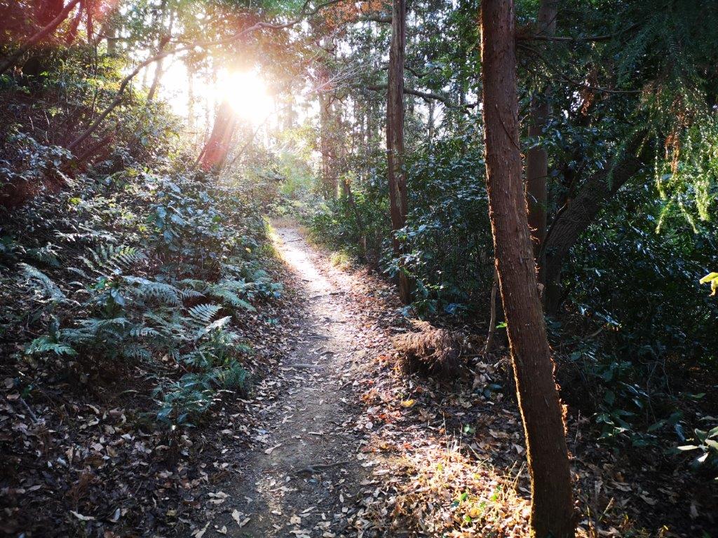 Against the sun, I was able to see the faint outline of Mt Fuji. I was delighted to view Japan’s most famous volcano from a new angle. To the right was the Tanzawa range. It was nearly 4 o’clock and the sun was slowly setting. The squirrels were more active than ever. Earlier on, I had enjoyed seeing them dart through the trees; in the gathering gloom, the crashing noises coming from the dark forest made me jump. I had hoped to walk east through the Hitorizawa Community woods (氷取沢国民の森) but I had to save it for another day. Instead, I continued to Ishindo Plaza. There, I turned left and descended into the valley, along a narrow hiking path.