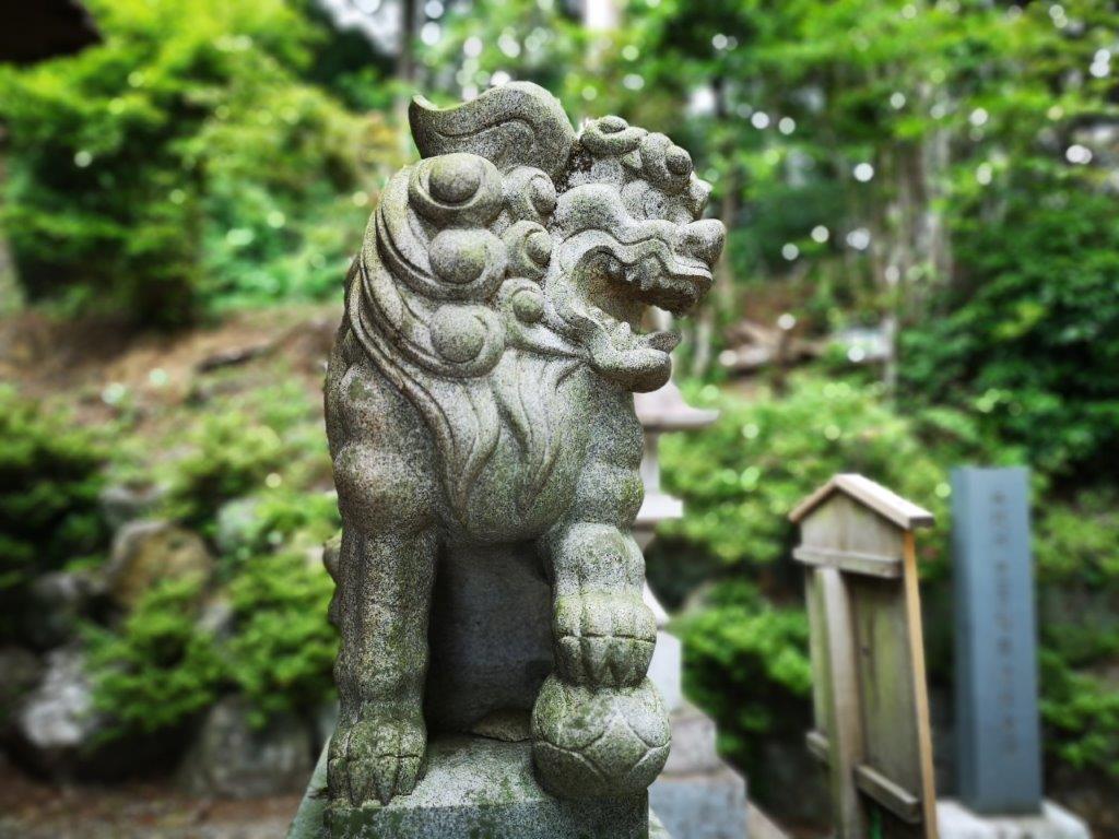 Totem pole of Taka-dera (left) and guardian demon of Tenryu-ji (right)