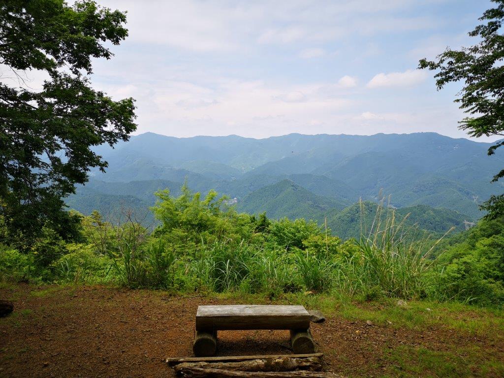 A little further, I reached an amazing viewpoint of the valley, through which the Seibu-Chichibu line passes. There was even an unoccupied bench, and the clouds had started to melt away, so I decided to stop for lunch. To the north, I could see the observatory at the top of Mt Maru and Dodaira; opposite was the Oku-Musashi Green line; looking south I thought I could spot Mt Hiwada. After a peaceful lunch, I continued to Nenogongen Tenryu-ji Temple (子ノ権現天龍寺 520m) just a few minutes away. There was another viewpoint above the temple and next to the bell, with the Kanto plain spreading eastwards.