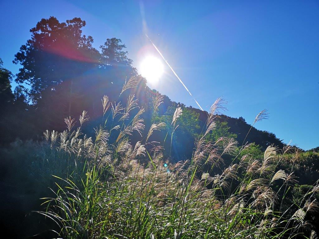 Suddenly, the path descended steeply and the ropes came in handy here. A few minutes later, I popped out on a small lonely road. I followed it downhill for a couple of minutes before turning left onto another, mostly level, hiking path. This led to a crossroad at Maezaka (前坂): straight ahead was the second half of the Hanno Alps; downhill and to the left was Agano station; however, I turned right towards Nakato (中藤). For the first time today I encountered some serious spiders webs across the path; fortunately I was facing the sun, so I was able to dodge them in time. I soon reached another road next to a stream which I followed all the way to the bus stop at the bottom of the valley.