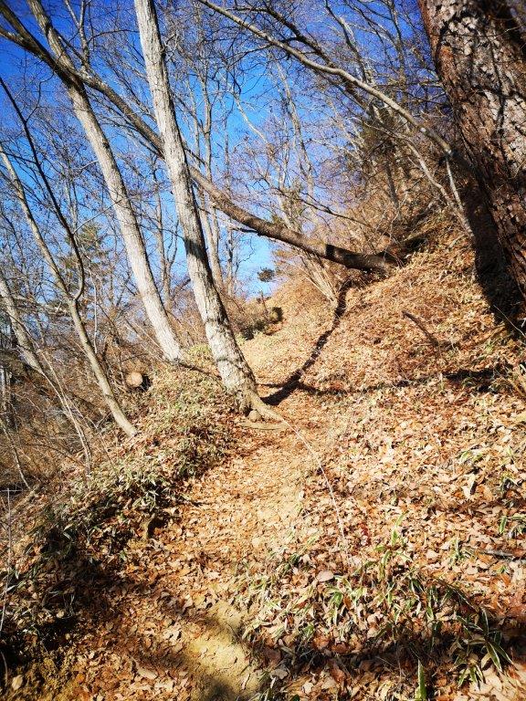 Thirty minutes after setting off, I reached a trail on the left; the forest road continued along the valley, eventually turning into the “sawa” trail, but I was keen to get on a proper trail as soon as possible. In no time, I was making my way up a steep ridge and had to stop to take off a layer of clothing. I soon arrived at a fork, and with little hesitation, left the slope for a more relaxing level path, following the contour of the mountain. Fifteen minutes later, the path merged with the “sawa” trail, climbing out of the valley to the left.