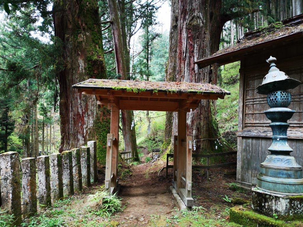The sky was disappointingly grey as I left Tokyo on the Nikko line limited express, although patches of blue started to appear as I approached Shin-Kanuma station at 9am, giving me reason to hope; however, the clouds reasserted themselves during the twenty minute taxi ride to the entrance of the Kasosan Shrine (加蘇山神社). I followed a small road for about 15 minutes to the shrine itself, perched on top of a long flight of stone steps. I spotted the trail on the left, past a small wooden gate topped with tuffs of green moss, with towering cedar trees on each side.