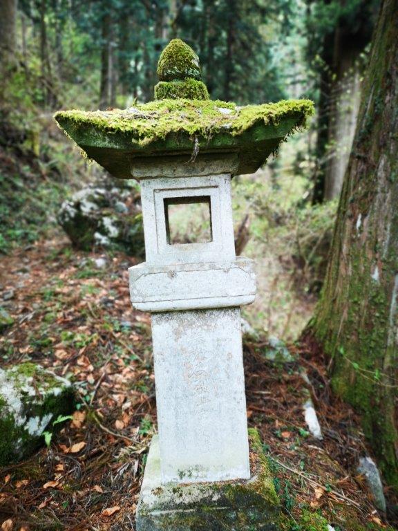 Ryugataki waterfall (left) stone lantern along the trail (right)