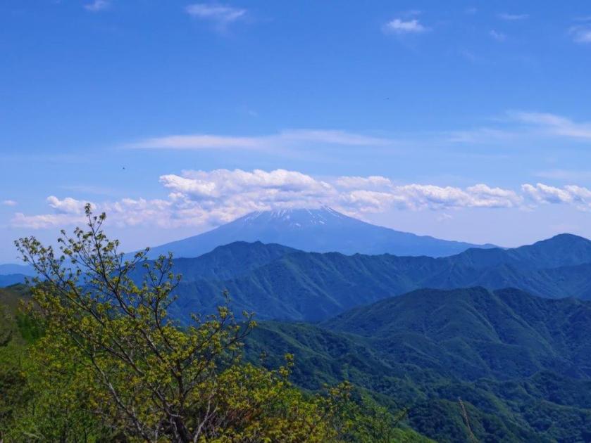 I was looking for a relatively easy hike above 1500 meters ending at a hot spring, conditions dictated by the increasingly warm weather. I had walked most of the long ridge extending south from Daibosatsurei, but on examining my hiking map, I found a short, unexplored section. As an added bonus, it included one of the 12 beautiful Mt Fuji views of Otsuki. I could reach the start of the trail by taking the Chuo line to Kai-Yamato station and then a bus to Tenmoku hot spring; I could return to my starting point via a different trail further to the south. The weather was supposed to be sunny, warm and relatively dry. I was looking forward to enjoying the fine spring weather before the start of the rainy season, as well as getting a good view of Mt Fuji.