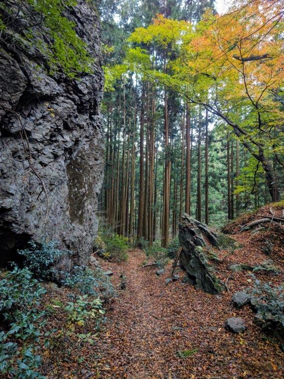 I passed by some trees in beautiful autumn colours, at the base of a rocky outcrop, probably the last time to see autumn leaves while hiking this year. At 3pm, I exited the forest and followed the road back to the nicely-designed Shomaru station, just a short distance away. There, I boarded the local train for the one-stop ride to Nishi-Agano and then transferred to the limited express for the one hour ride back to Ikebukuro.