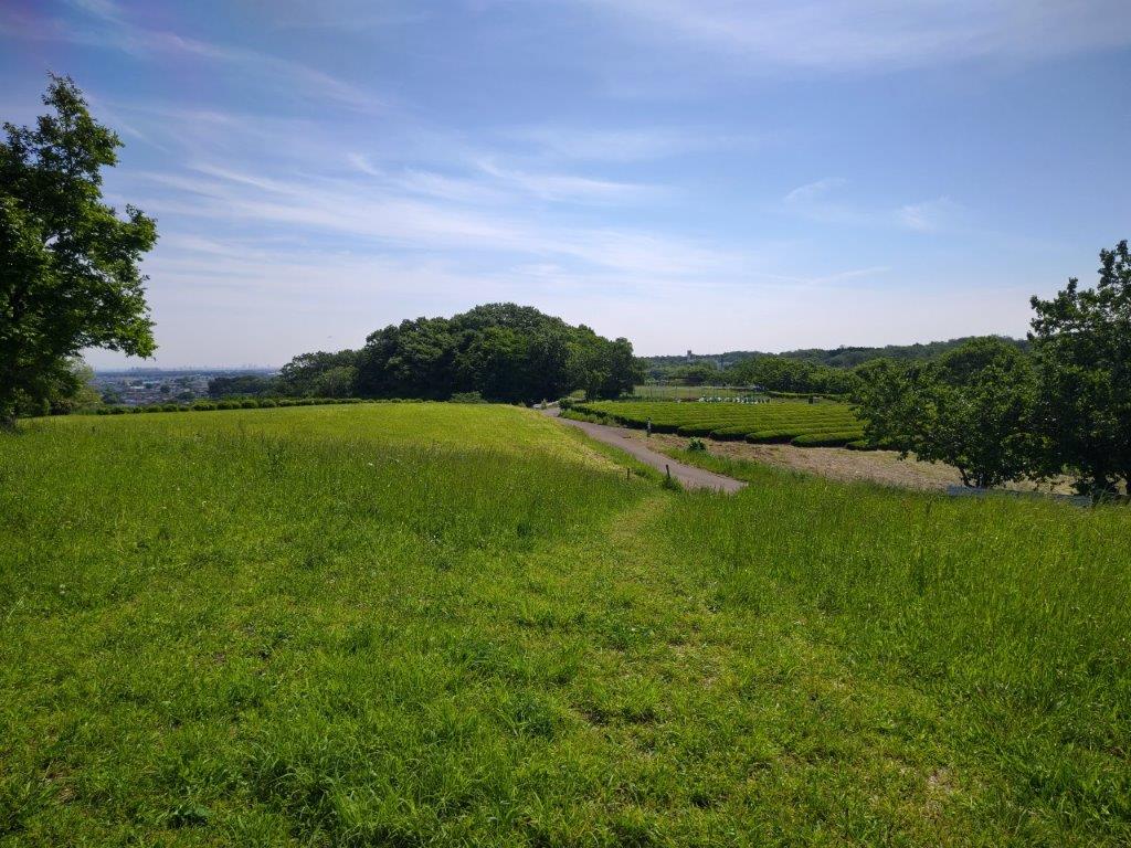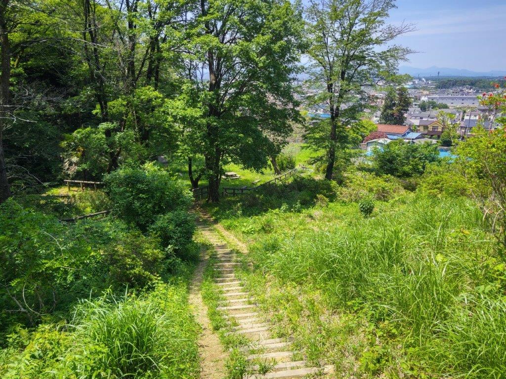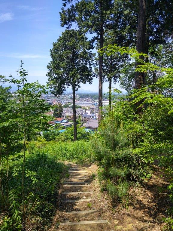 It felt like I was walking through a hidden valley, lush vegetation on both sides. After some ups and downs, I arrived at Satoyama-minka (里山民家), a recreated traditional farmhouse from the Edo era, at the edge of the forest. It was past 11am, and I was behind schedule, so I skipped a visit, and headed up a charming valley, filled with paddy fields, and frogs, judging from the croaking noises. After a short climb through forest, I reached the observatory at the top of Mt Rokudo, merging with my previous hike. Heading west, I passed the triangulation point, and soon turned left onto a path down the hill side.