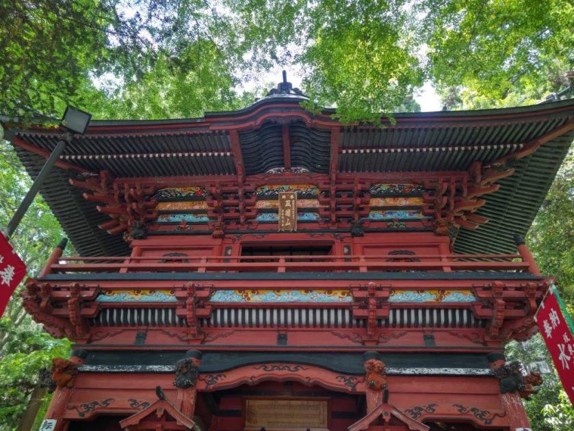 It was already very warm as I got off the nearly empty bus at 10am, after a one hour ride from Takasaki. I quickly walked past some Udon restaurants and up a steep staircase. I was impressed by the massive Buddhist gate leading to the 1300 year-old Mizusawa-dera 水沢寺, quite busy with sightseers despite the mid-morning heat. I sat on a bench next to a ancient cedar and got ready for my hike. At 10h30, I ducked under a small red Shinto gate and climbed another steep staircase, as chanting from some Buddhist ceremony drifted up from below.