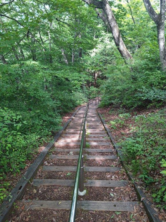 Trail past Tsutsuji-ga-oka (left) Staircase leading to Haruna-jinja (right)