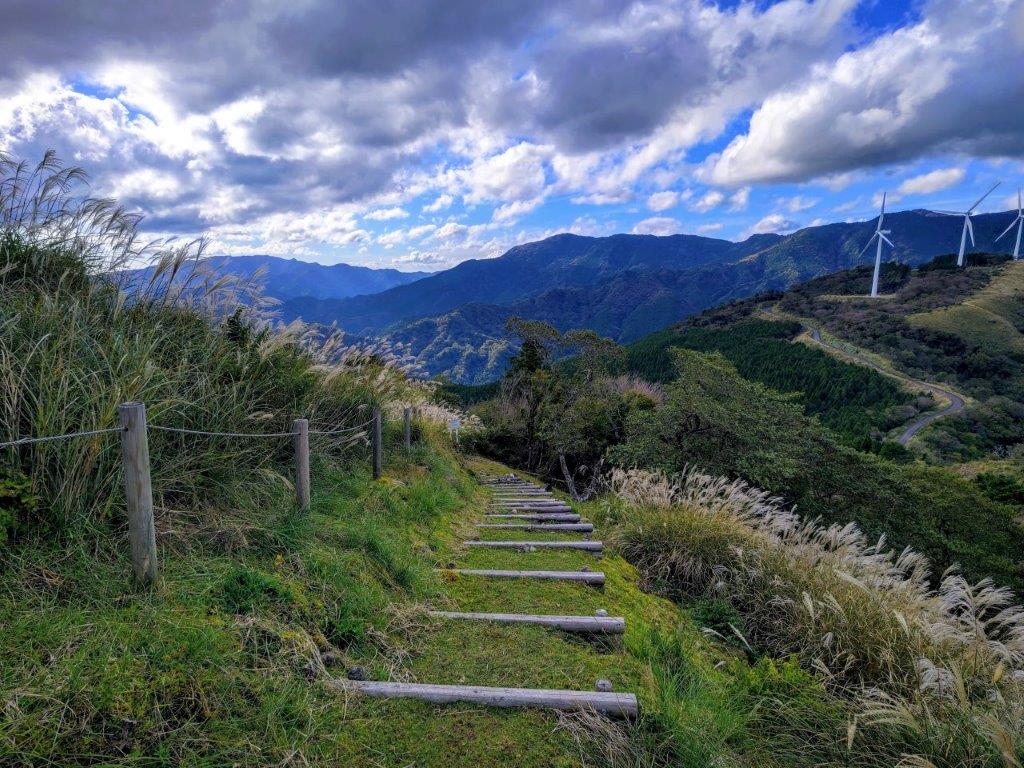 I had wanted to hike the “Amagi Misujiyama Trail”, ever since I had spotted it on my map a few years ago. However, the hike from Amagi Pass all the way down to the coast seemed just too long day for a day hike. On my previous visit there, I realised it was possible to catch a seasonal bus from Showa-no-Mori-Kaikan to Hachoike-Guchi, cutting out the two-hour climb from the pass. I had another breakthrough when I found out about a short-term bus running from Hosono Plateau to the Izu-Inatori station, shortening it by one more hour. With a mostly downhill route with stunning views and a favourable weather forecast, it was the ideal hike after a one-month break. On Mt Noborio, I had a glimpse of the many wind turbines along the trail, and so I was curious to see them close up. It would be my sixth time on Mt Amagi and I looking forward to exploring another side of this ancient volcano range.