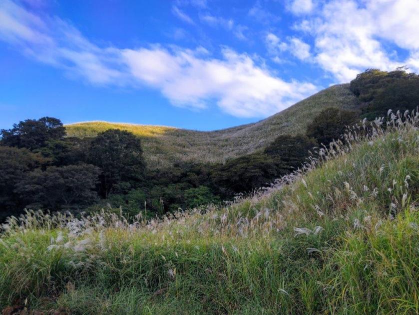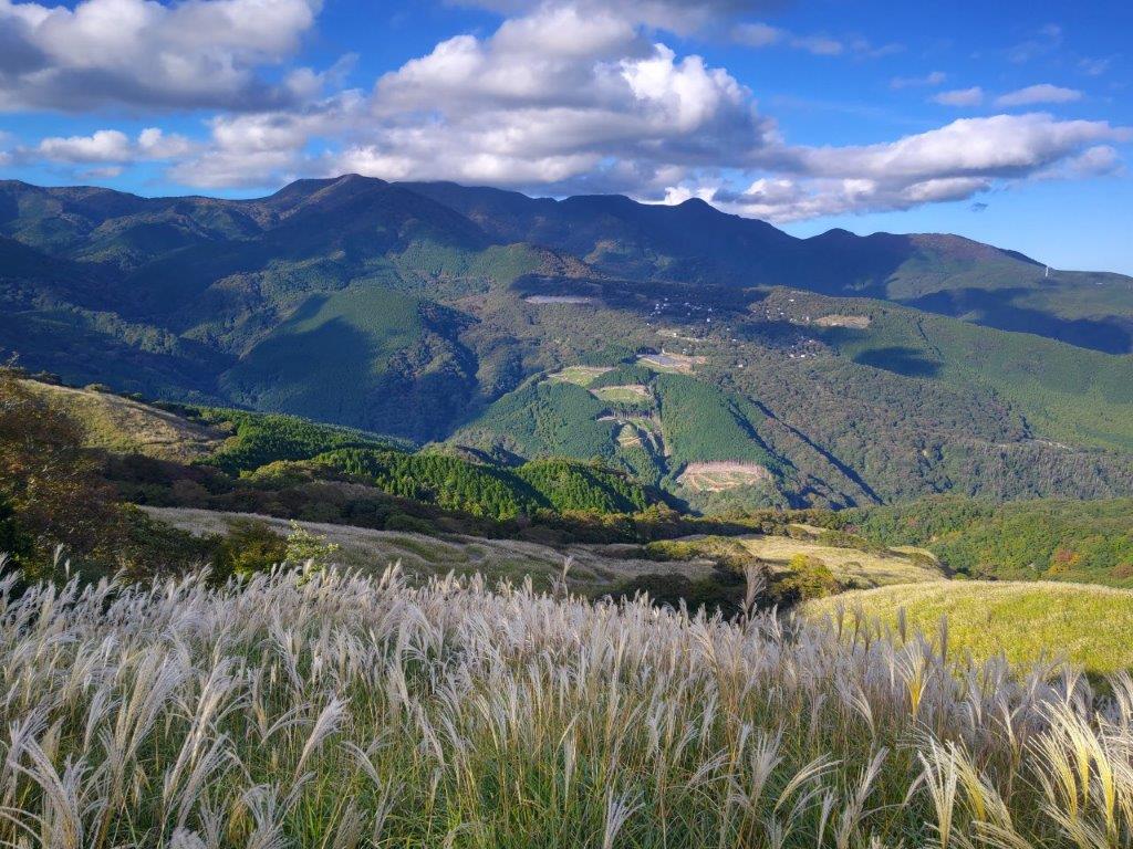 I was now walking in the midst of the “suzuki”, the main reason to visit Hosono Plateau, and best viewed during the month of October. I had great views north of Mt Amagi and south of Oshima island. The clouds had mostly drifted away and the surrounding landscape was golden in the late afternoon sun. A little before 4pm, I reached a big parking lot, where I caught the nearly empty bus for Izu-Inatori station. There I rode a local trail to Atami station and then transferred to the Shinkansen for the one hour ride back to Tokyo.