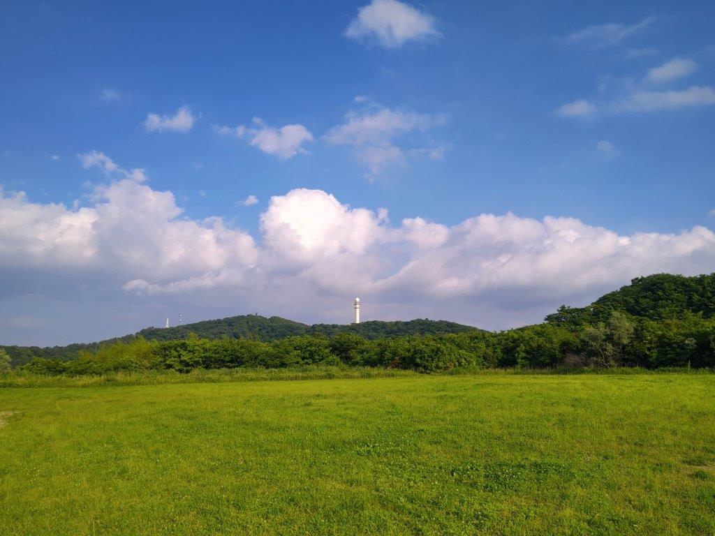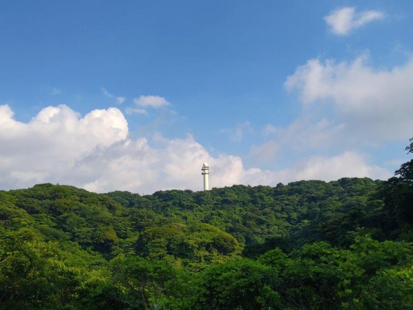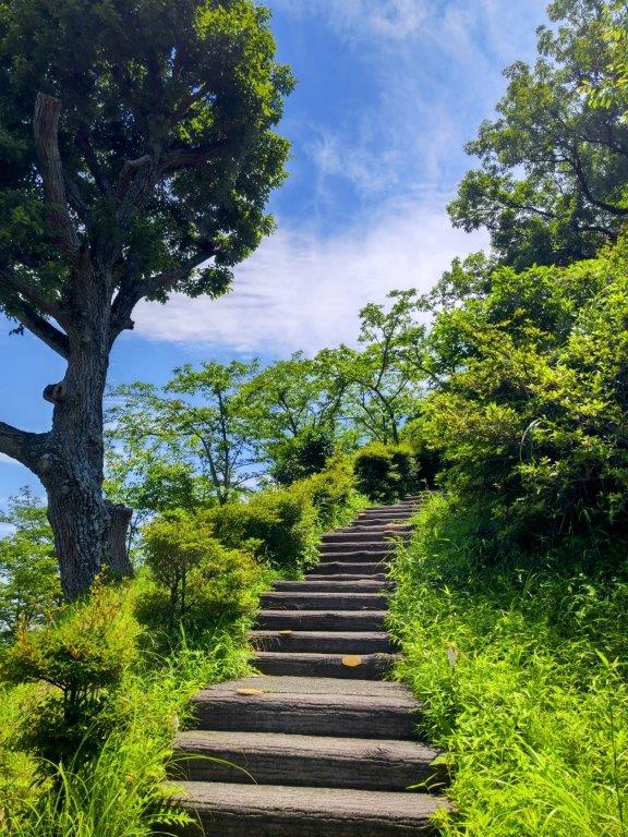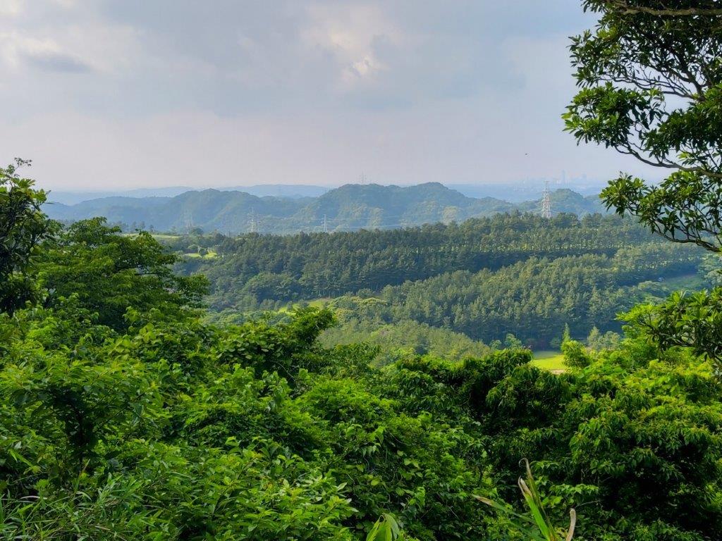 I could hear festival music playing in the background as I prepared for my hike. I set off at 11am and first made a small detour by “Hotaru no Sato” (Firefly village). It was too early in the day to see any fireflies but I discovered a charming little river valley filled with birdsong; although a path led directly to Tsukayama Park (塚山公園), I decided to head back and follow the official route, and at noon, arrived at the observation deck (見晴台) at the top of the park.