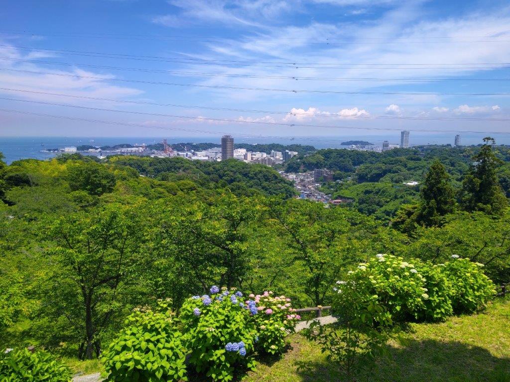 I wanted to do some more nearby, low-altitude hiking before the hot and humid weather forced me to travel far and high. Looking at my new Miura Peninsula hiking map, I decided to revisit Mt Ogusu: this time I’d start from Hemi station on the northeast side, and finish at Shonan Kokusai Village on the northwest side; on the way, I could pass by Anjin-Miura’s grave in Tsukayama Park, first visited in February 2019. I could also see the view from the Mt Ogusu observation tower, hopefully open this time.