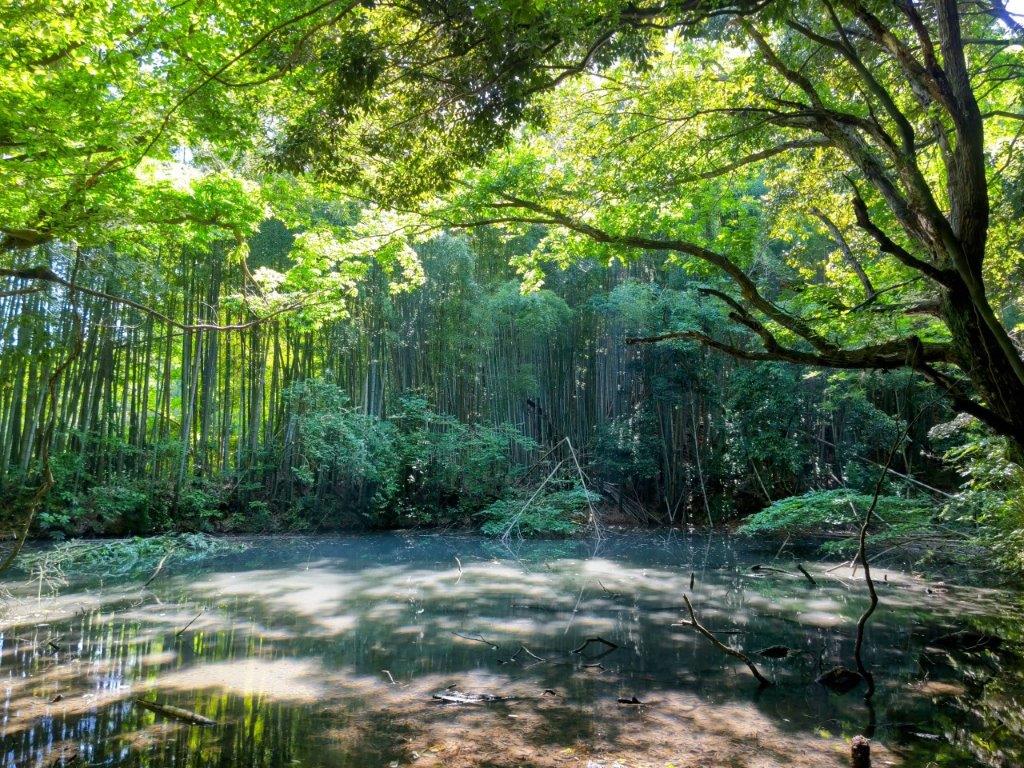Walking next to the Bamboo (left) Path up Mt Ogusu (right)