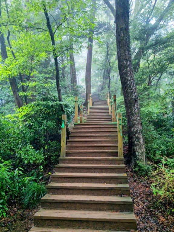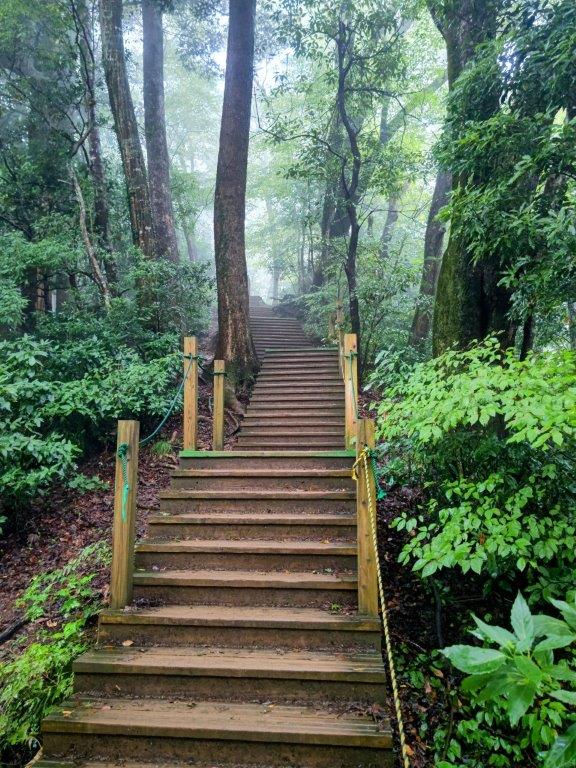 Walking up Wooden Steps (left) and Through the Mist (right)