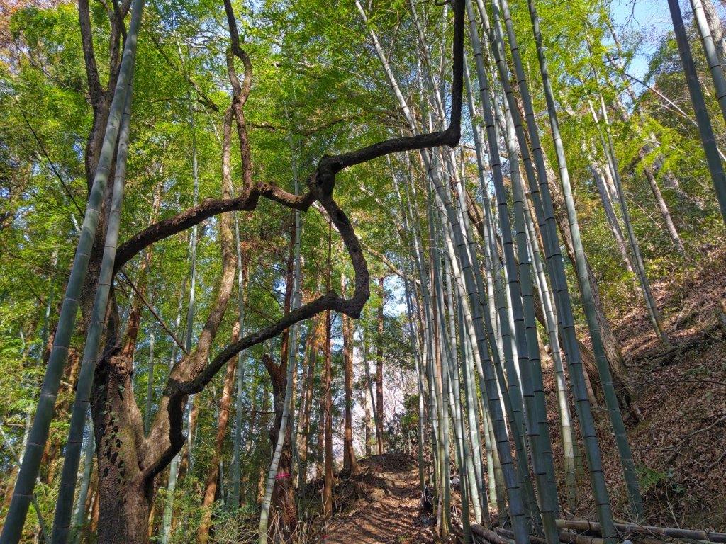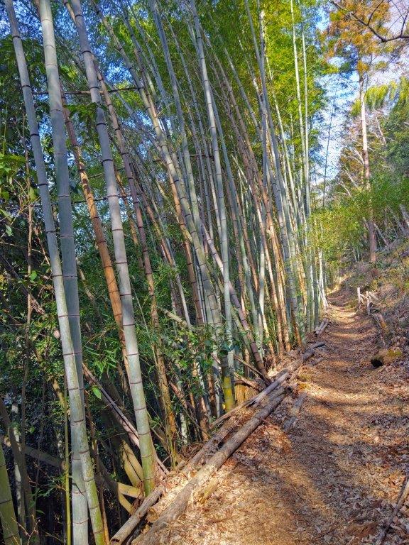 I couldn’t spot a cloud in the sky as I rode the Chuo line westwards through the Tokyo suburbs, Mt Fuji clearly visible to the south. The train leaving Shinjuku station had been delayed but fortunately the connecting train at Takao station kindly waited for us, and thus I was able to board the bus from Fujino station as planned. After a ten-minute ride on a half-empty bus, I got off at Kami-sawai stop, a peaceful spot on the Sawai river, here and there plum blossoms in full bloom. I quickly located a sign for the trail entrance on the right side, and a little after 10am, was following a charming path next to a bamboo grove.