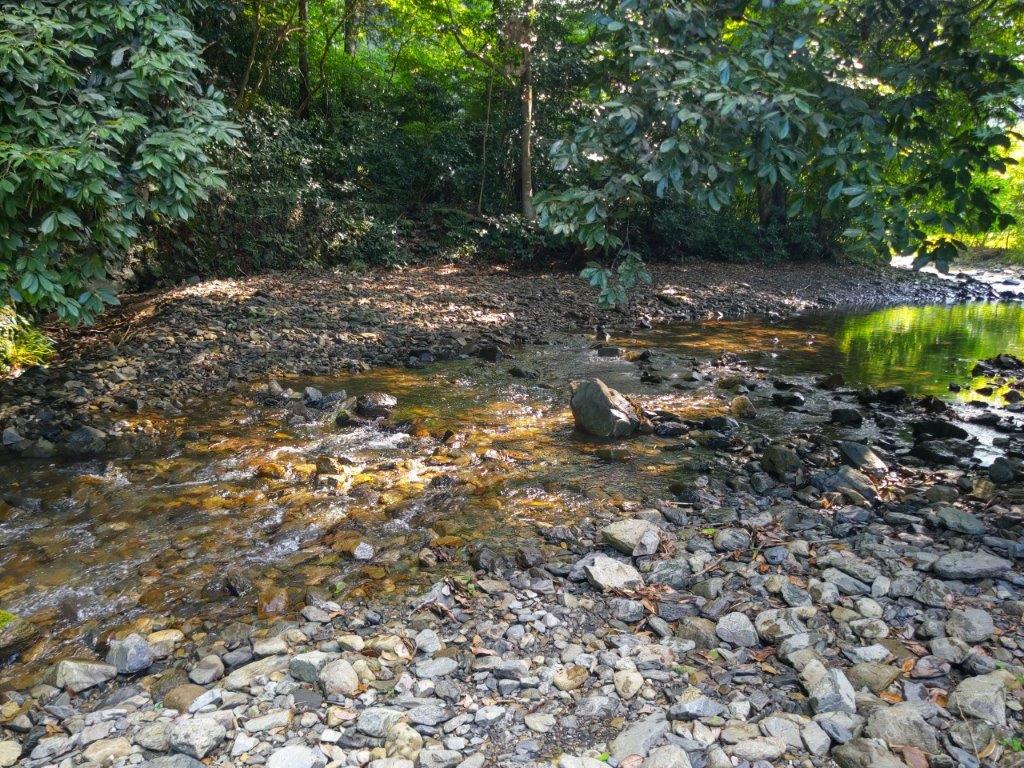 It was a blue sky day as I drove southwards from Kofu station towards the Misaka Mountains (御坂山地). After following a narrow road along the Ashi river valley, I arrived at the Lily of the Valley Flower Colony Parking Lot (すずらん群生地駐車場) just after 11h30. I had to use a smaller parking for hikers since the main one, a little further down the road, was reserved for people using the Twin Terrace Bus. A little after noon, I set off along a faint path starting from the parking lot. After passing a second parking for hikers and crossing a small bridge over a dry riverbed, I arrived at an electric fence beyond which was the start of a well-defined walking path.