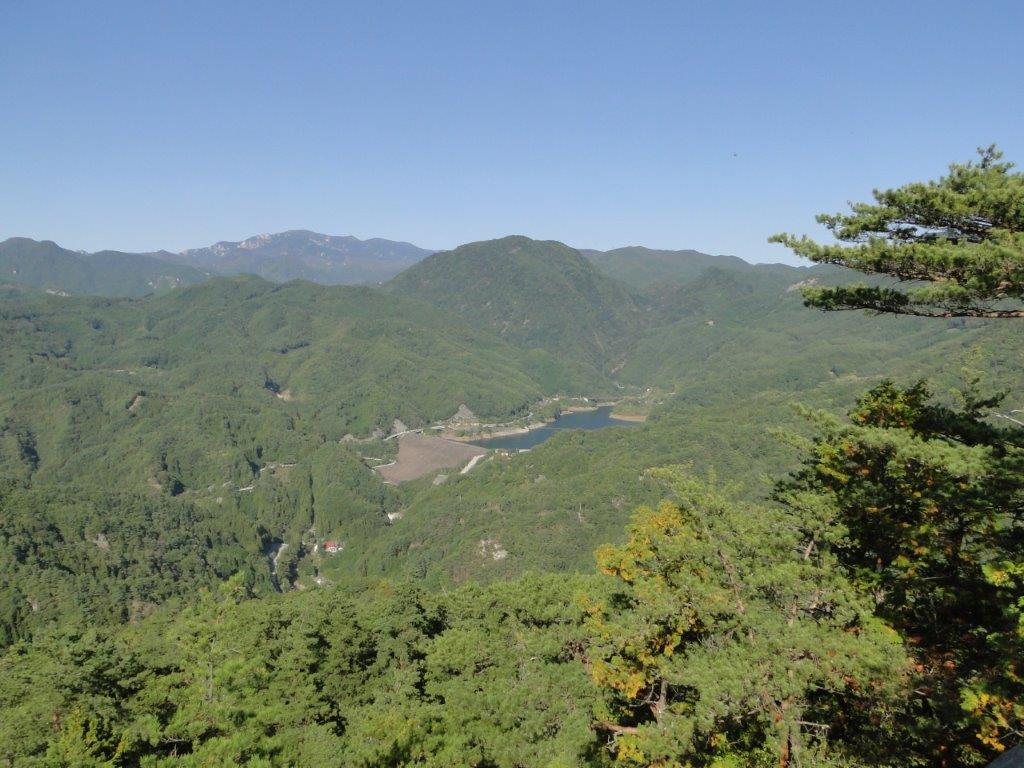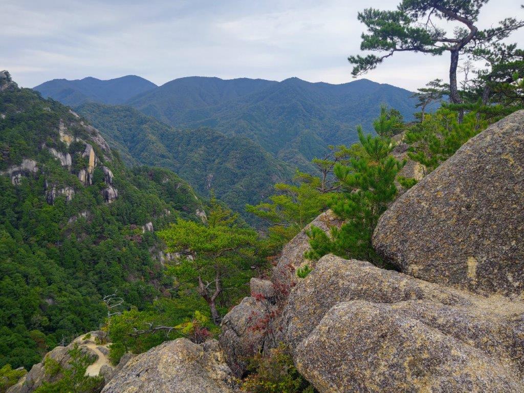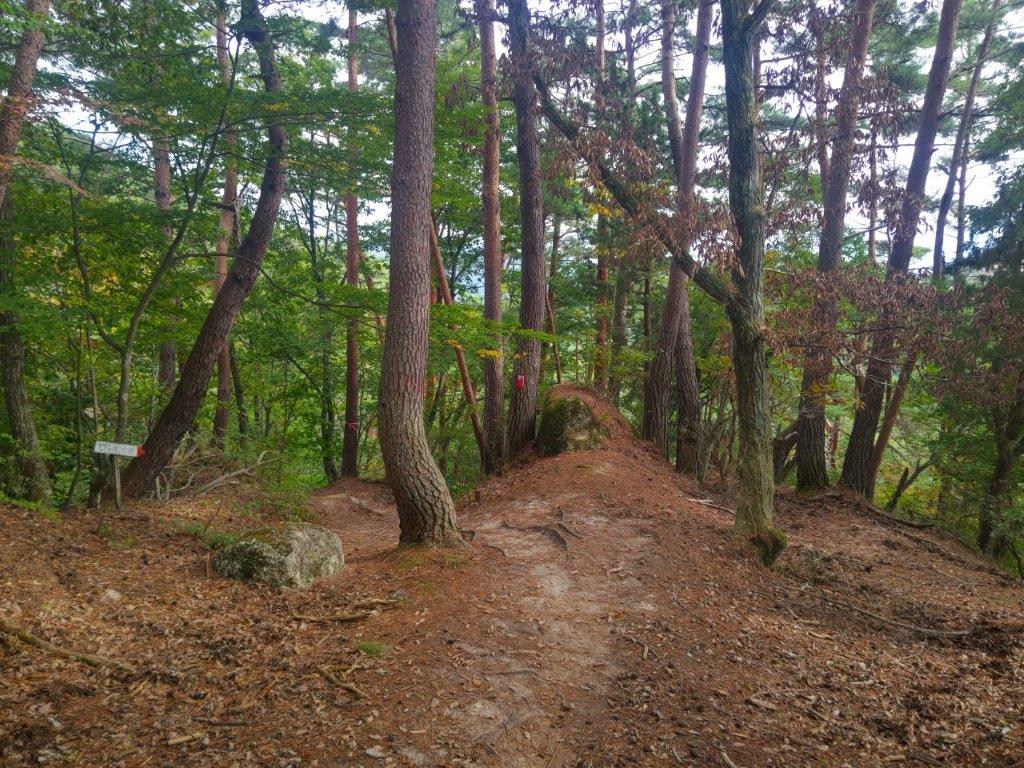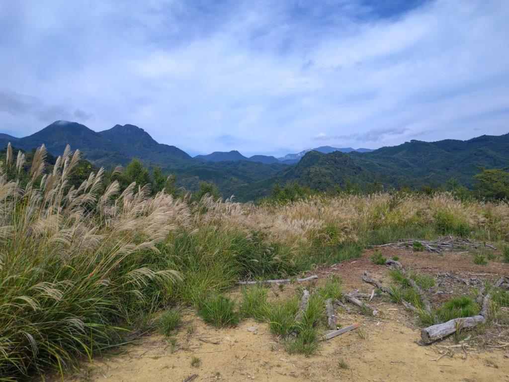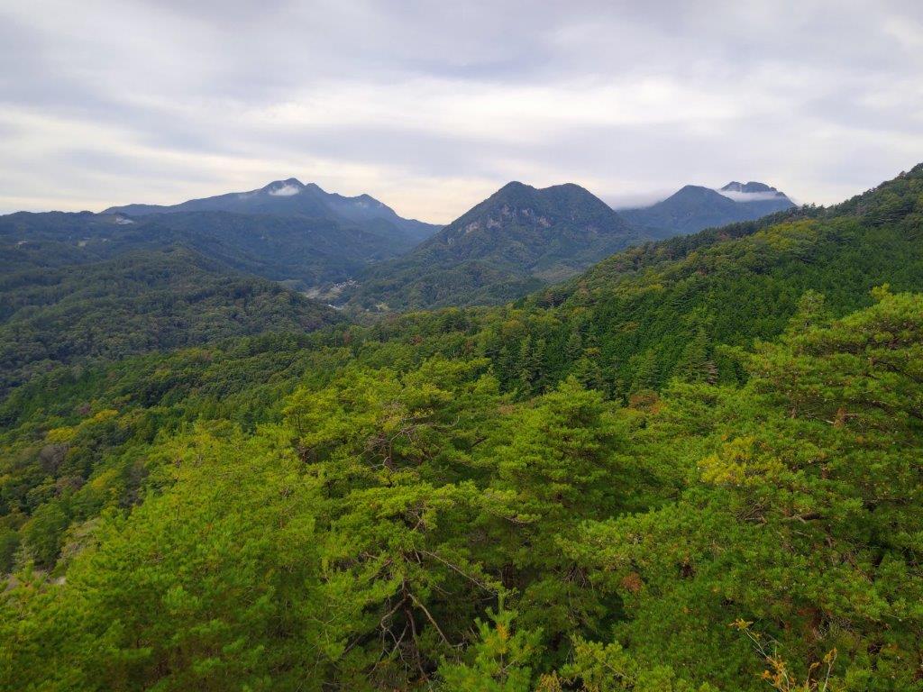 I was surprised to see that thick clouds had rolled in during my ascent, completely hiding Mt Fuji from view. According to the other hikers, I had missed Japan’s iconic volcano by only a few minutes. Looking down, I still had a view of Kawaguchiko lake extending east to west along the base of the mountains. On the right side, I could see Mt Ou and Mt Setto, two other main peaks of the Misaka mountains. I decided to skip my planned lunch break and immediately head to the next summit, in hope that the clouds would have cleared by then. I retraced by steps and headed down a steep path on the west side; beyond Suzuran Pass (すずらん峠), the path became level and easy to walk.