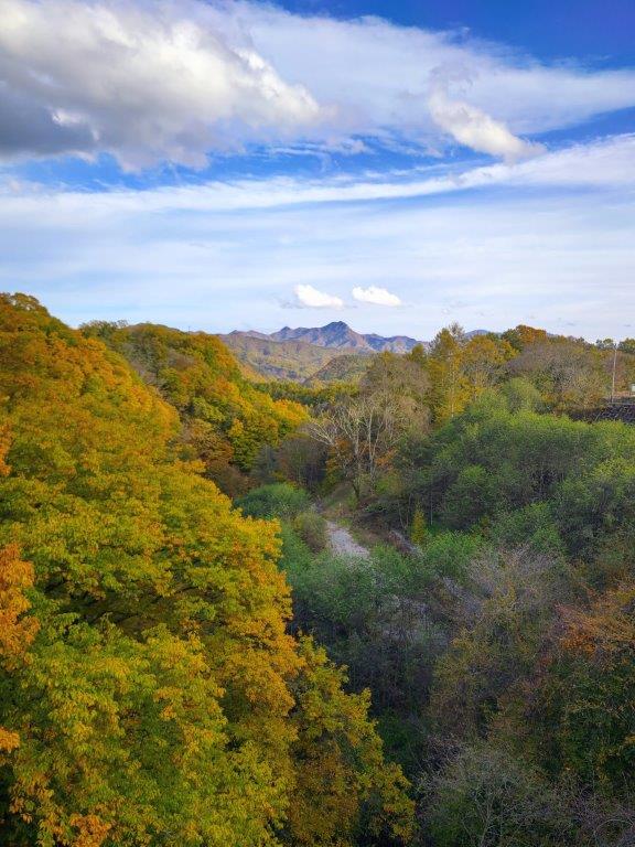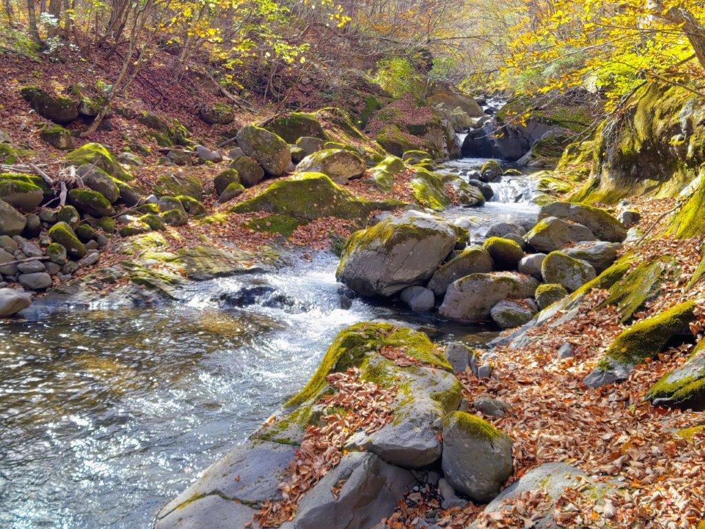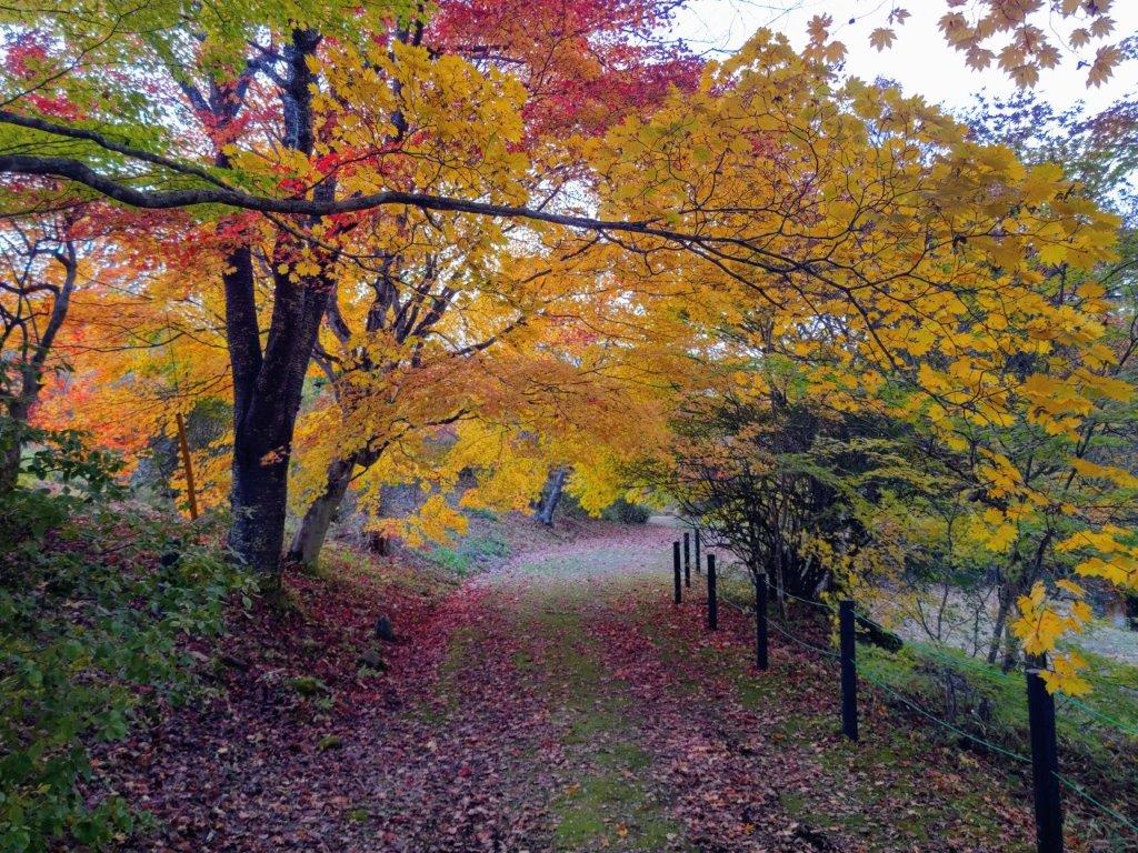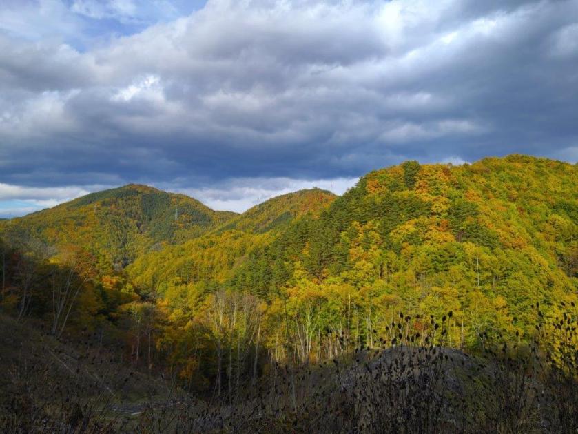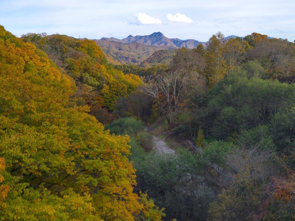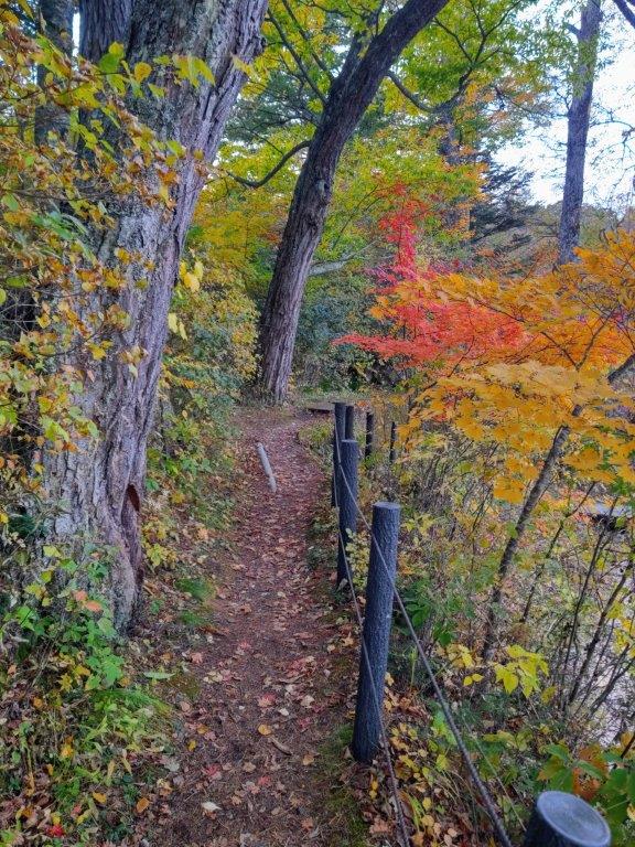 During this part, I finally got a close up view of some beautiful Autumn leaves. A little after 3h30, I arrived back at my car, the last one left in parking area. I drove a short distance to Kamiku-mo-yu, which I reached just before sunset, and after a refreshing hot bath, got back behind the wheel for the return trip to Kofu. Although I experienced a “shy Fuji” today, I was glad I could do a hike in the Fuji area, somewhat of a challenge nowadays due to the high number of overseas visitors. I’d like to return one day and try another hike, but this time starting from Fujiyama Twinterrace.