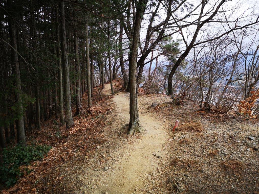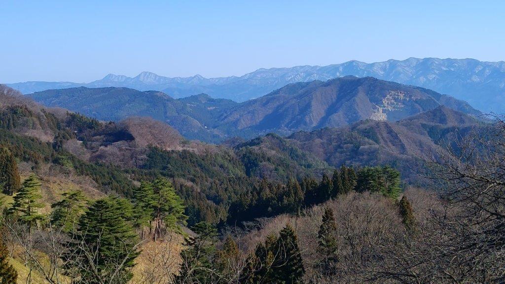 Along the way, I enjoyed the view of plum blossoms trees in full bloom, whetting my appetite for the approaching cherry blossom season. As the road climbed higher and higher, I noticed patches of melting snow in the shade, a reminder of the winter weather that had only just loosened its grip a few days ago. At 1pm, I reached a trail at the base of the Sakura no Sato Prefectural Forest Park (県立森林公園 さくらの里), meaning “Sakura Village” and famous for its many cherry blossom trees, supposed to reach full bloom in a few weeks. A short climb took me above the tree tops, their buds firmly closed, and at a fork in the path I stopped to turn around.
