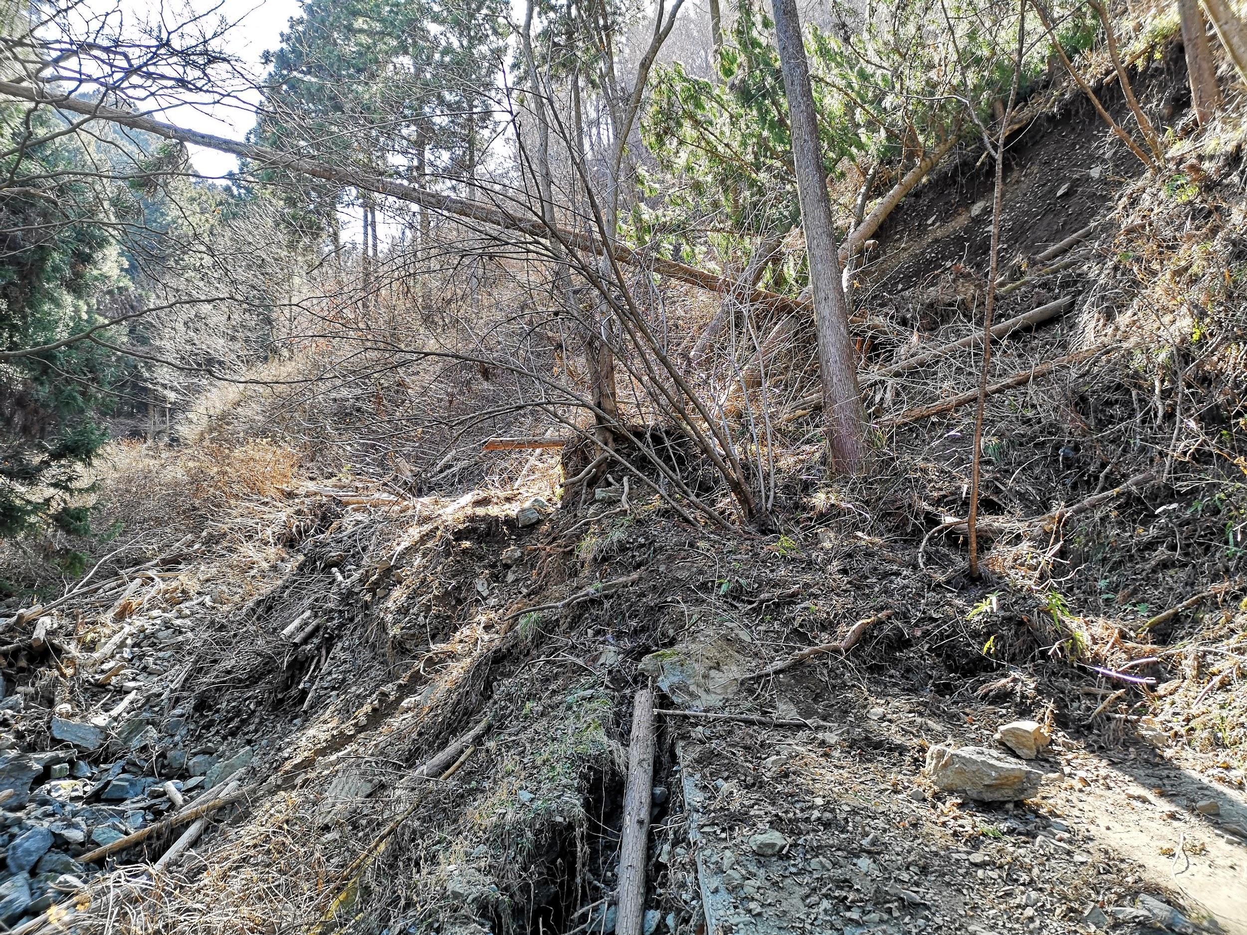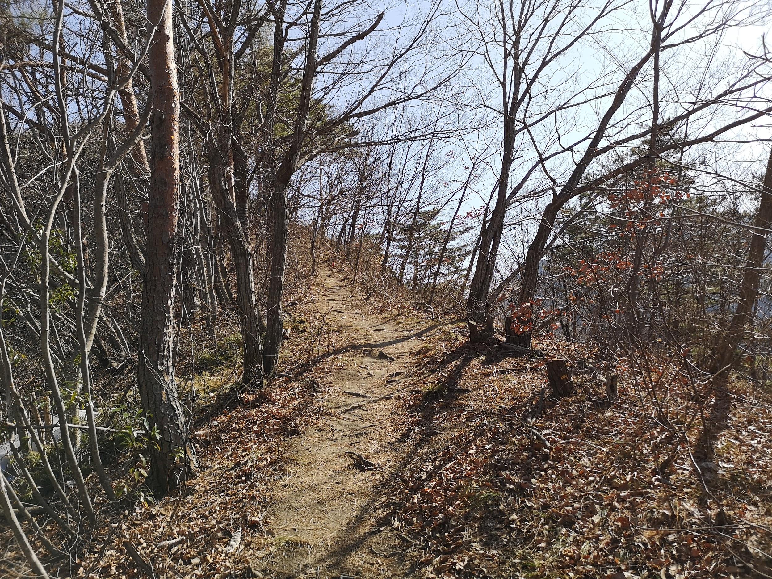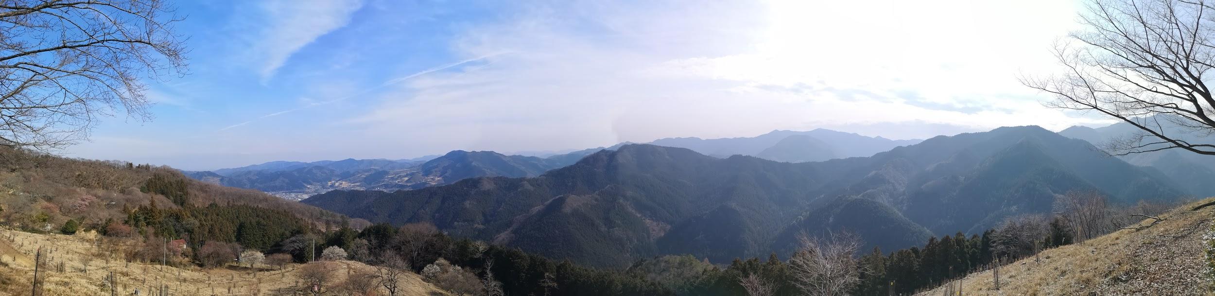 After lunch, I tried to match all the Joshin’Etsu mountains using the summit information board, since only the Tanigawa range on the very right was instantly recognisable ; apparently on clear winter days, one can also see the Chichibu Mountains, the South Alps and Yatsugatake. Although trees blocked the views in other directions, I was able to spot the still snowy top of Mt Hodaka through some bare branches on the north side, a preview of my upcoming descent. A little before 2pm, I set off again, down a steep path on the west side.