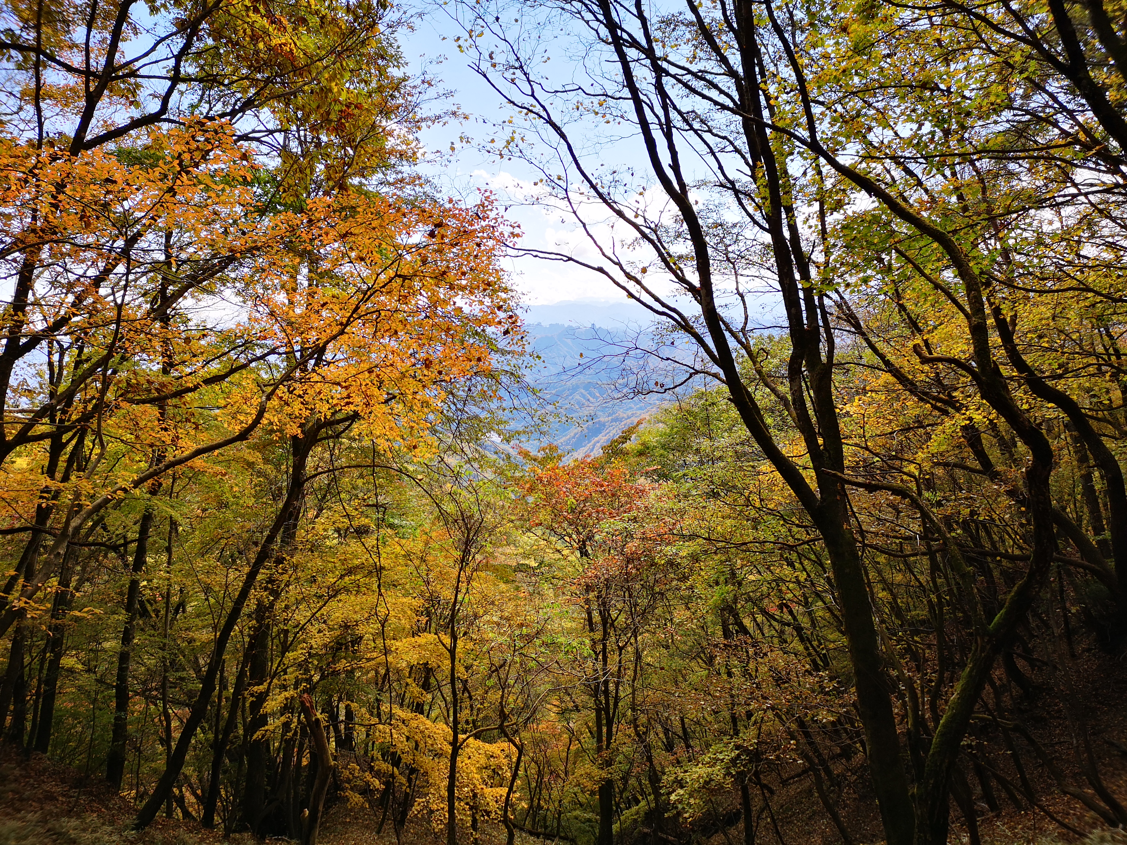 After lunch, I tried to match all the Joshin’Etsu mountains using the summit information board, since only the Tanigawa range on the very right was instantly recognisable ; apparently on clear winter days, one can also see the Chichibu Mountains, the South Alps and Yatsugatake. Although trees blocked the views in other directions, I was able to spot the still snowy top of Mt Hodaka through some bare branches on the north side, a preview of my upcoming descent. A little before 2pm, I set off again, down a steep path on the west side.