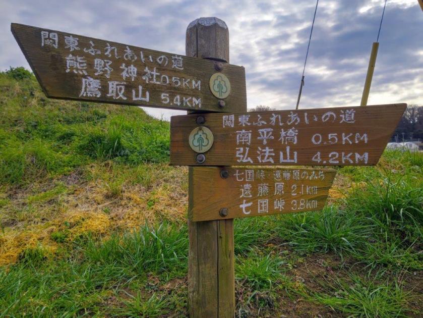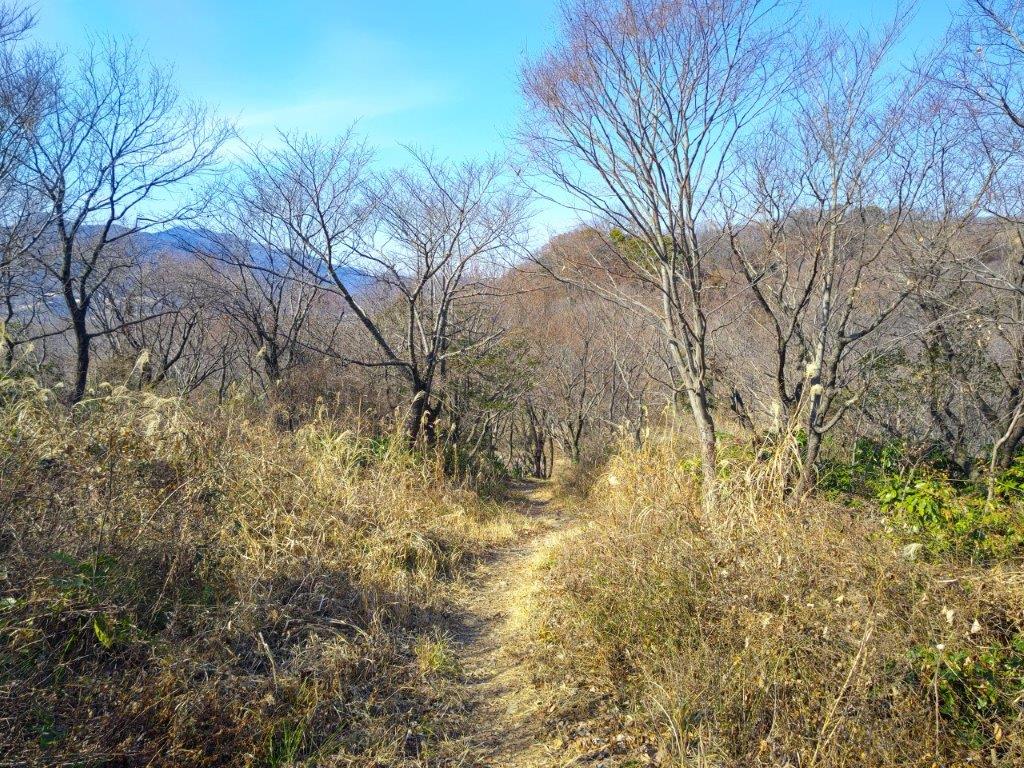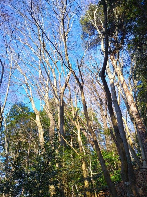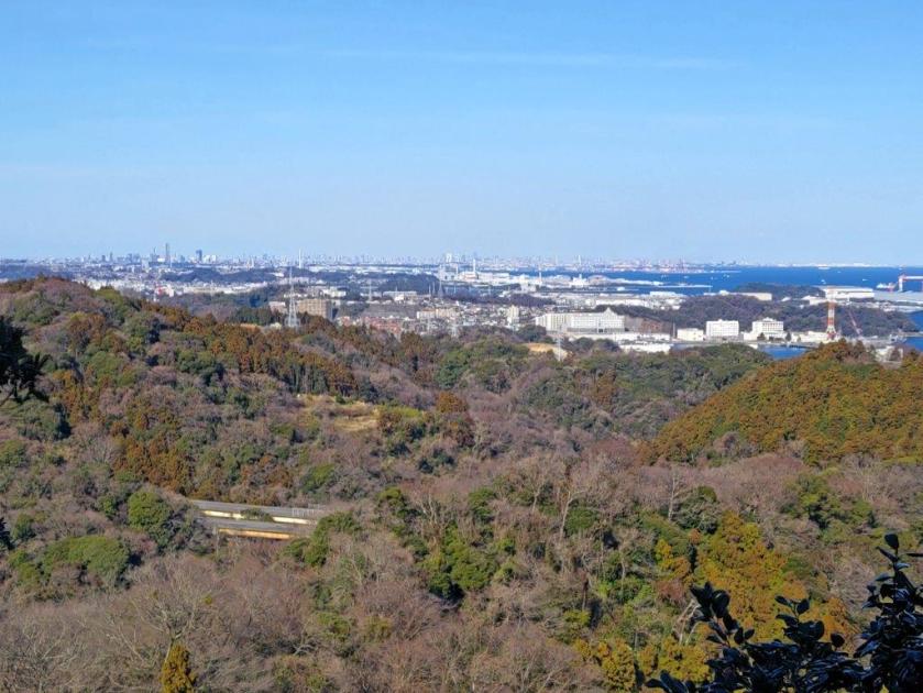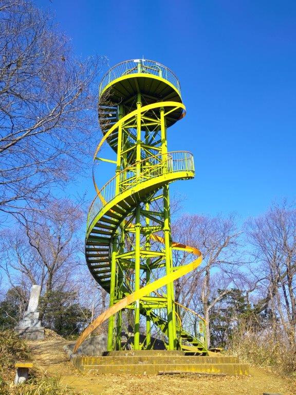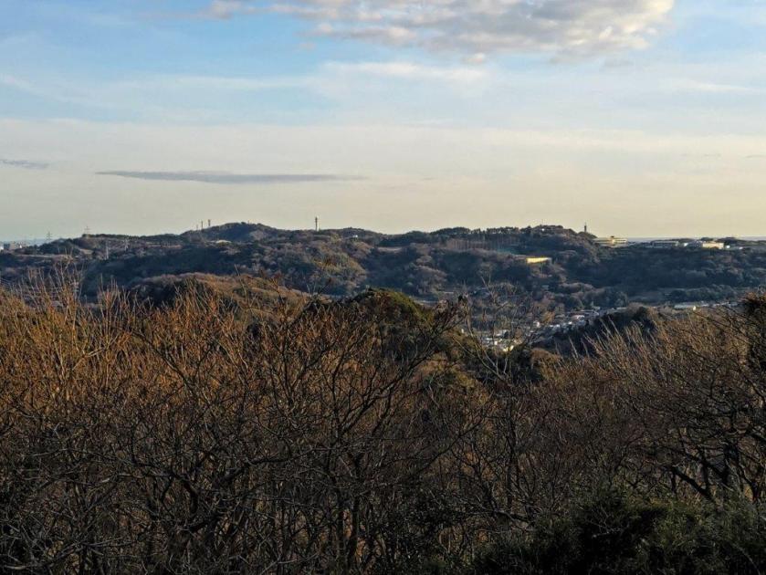 It was one of the tallest observation towers I’d ever been up; unfortunately, bare branches still reached high enough to partly interfere with the view of the Tanzawa mountains on the western side; I could still make out the triangular summit of Mt Oyama, as well as Mt Kyogatake, Mt Bukka and Mt Takatori; on the eastern side was the flat Kanto plain, Tokyo’s skyscrapers lost in the haze. Looking south, I could see the elevated plateau stretching from Shonan Daira to Hadano city. To the north, I could observe the entire length of the hills I’d be hiking today.
